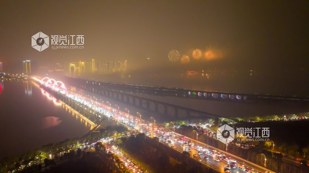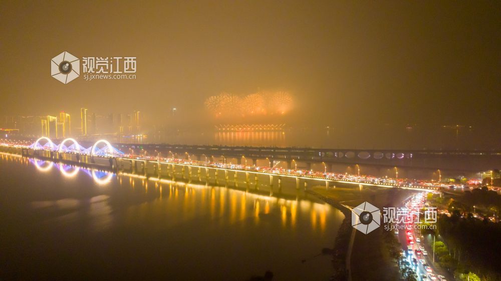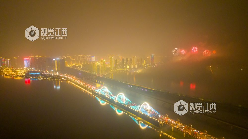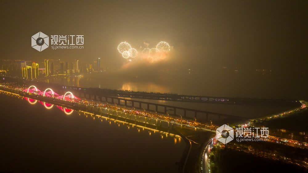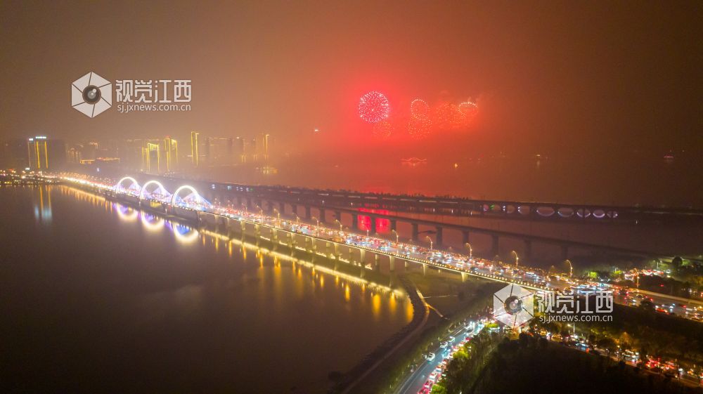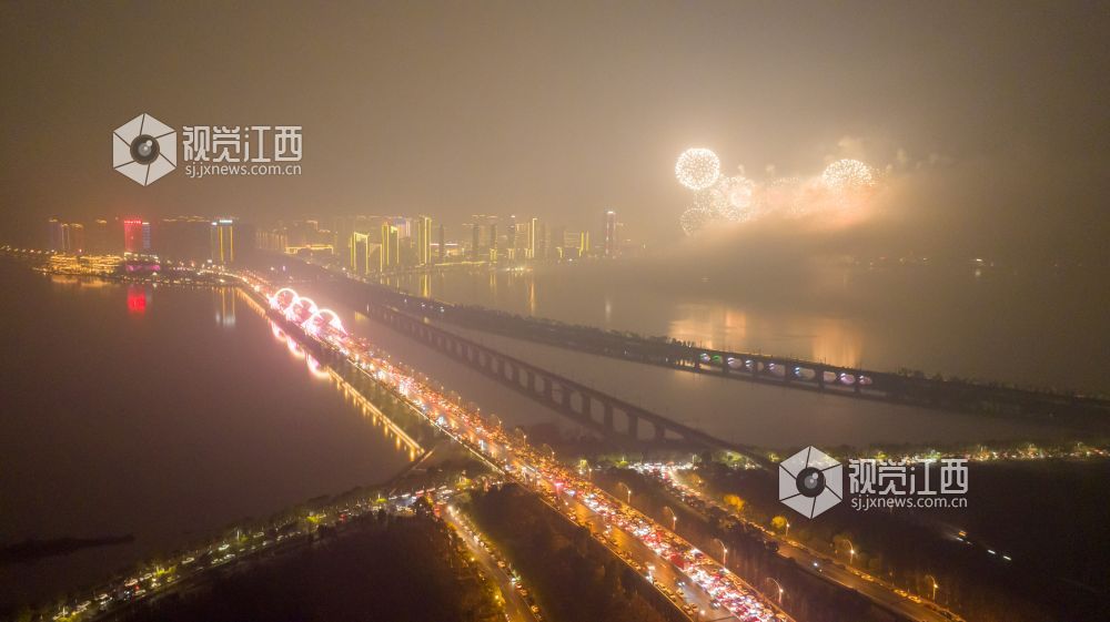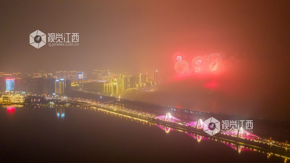 2023年1月21日晚,江西省九江市甘棠湖和八里湖畔,五彩缤纷的烟花迎空绽放,把夜空装扮得绚丽璀璨,格外喜庆,为九江市民带来了一派欢乐祥和的节日气氛。