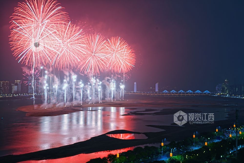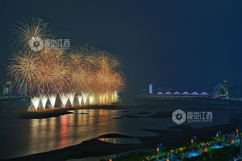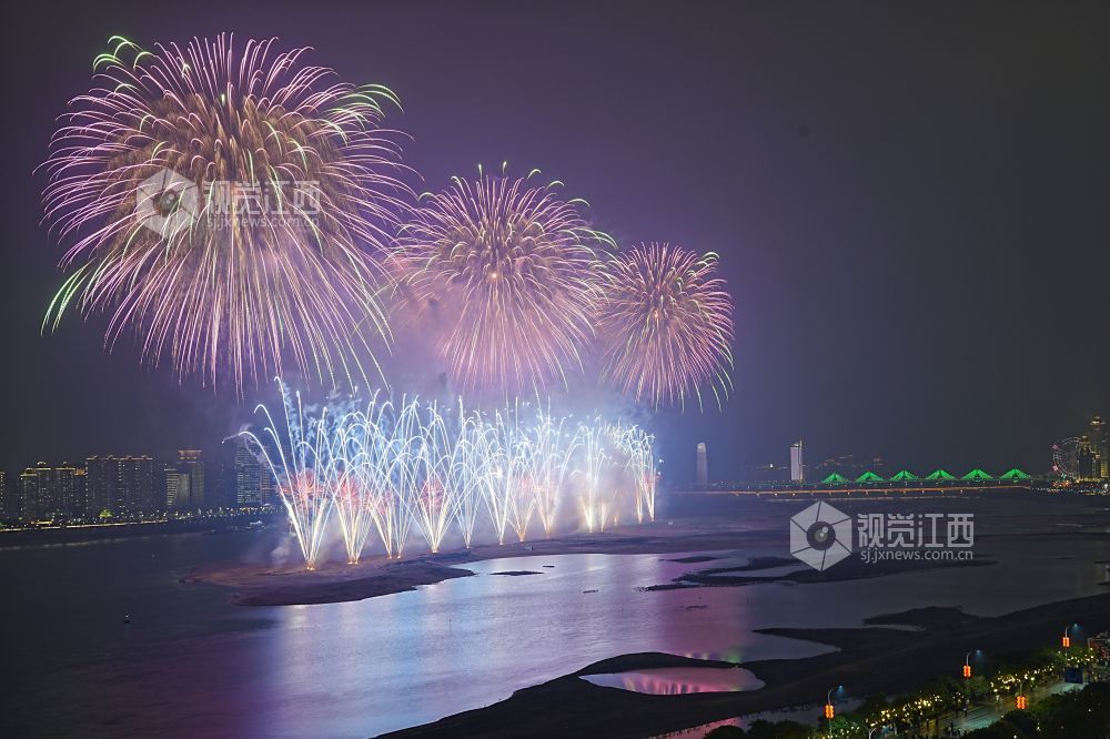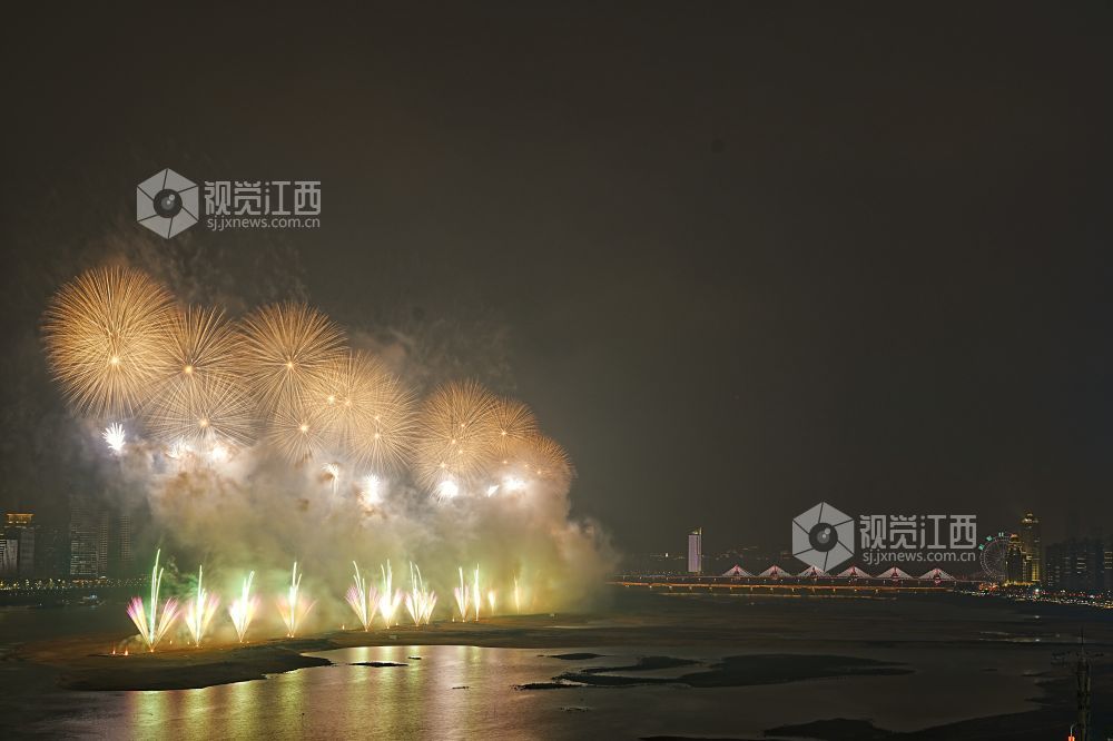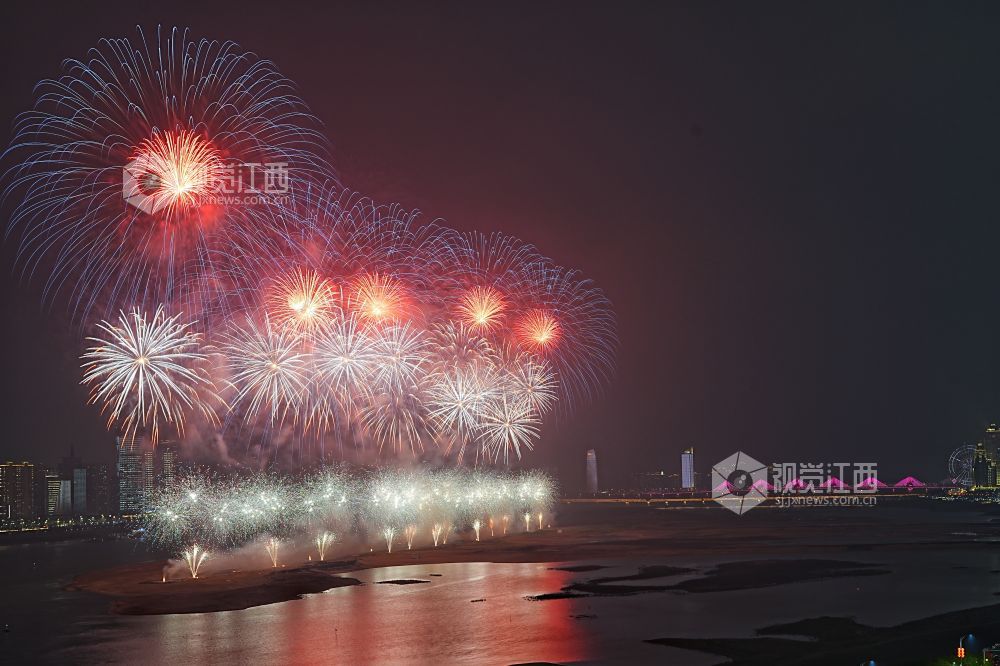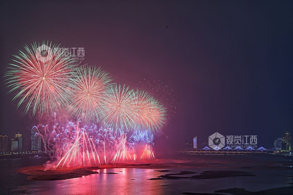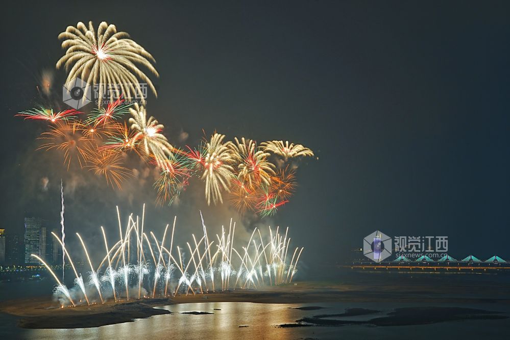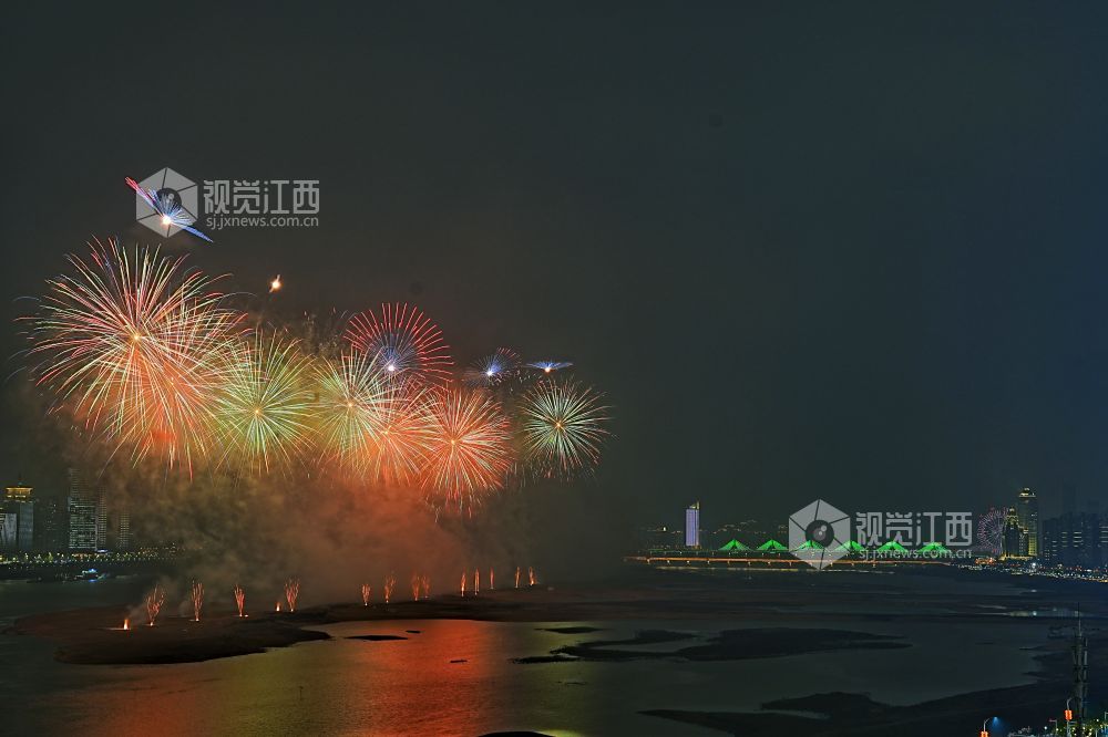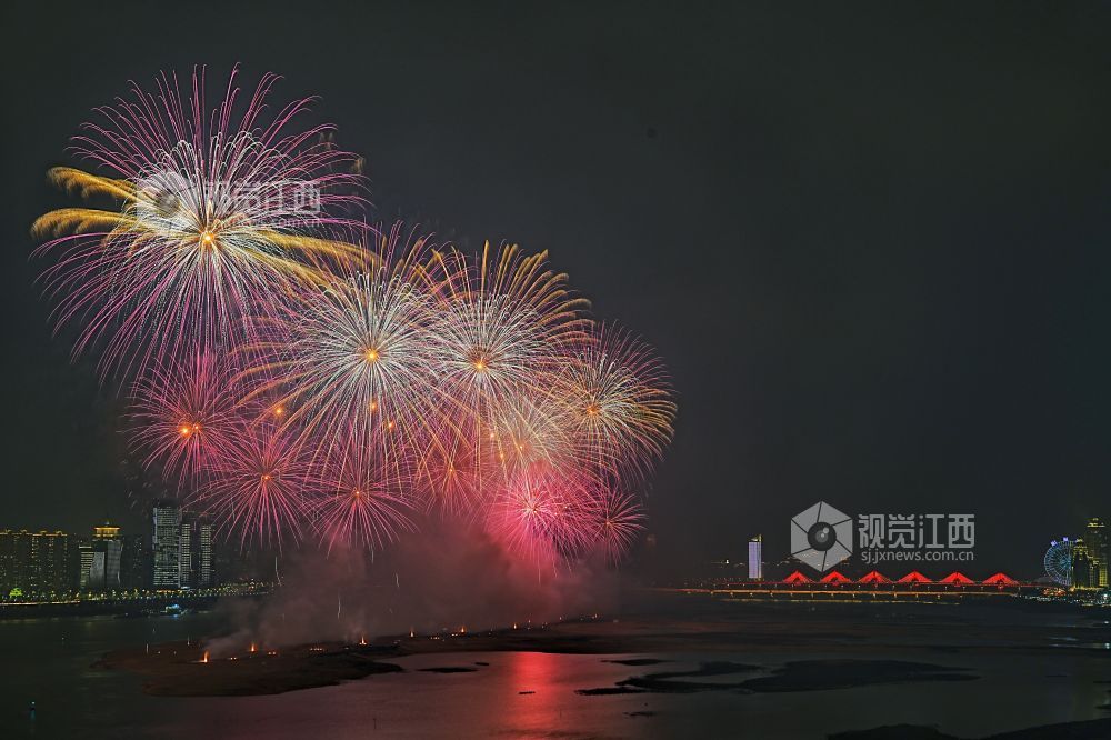2023年1月22日晚上,江西省南昌市在一江两岸秋水广场附近的江心州举行新春烟花晚会。