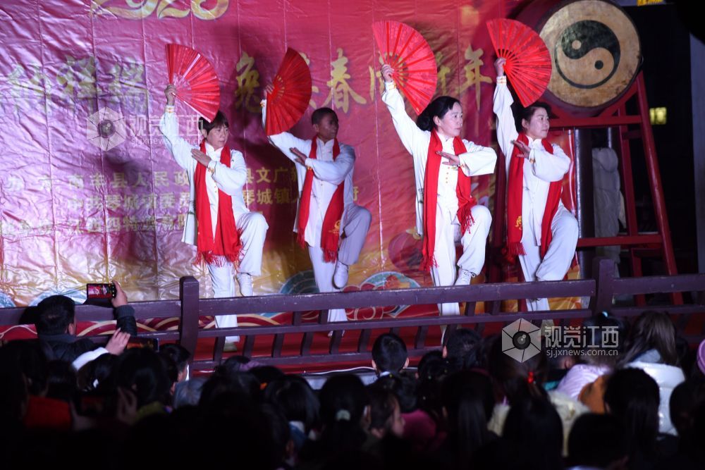 新春文艺晚会在“妆迎”活动中拉开序幕,接着,独唱《恭喜发财》、独舞、《陈式26式太极拳》、《陈氏太极扇》、《鼓舞》、《武术表演》、猜灯谜、葫芦丝演奏、南丰傩舞等精彩纷呈的节目轮番上演,最后,晚会在彩烟袅袅绽放的《烟花秀》中落下帷幕。通过举办新春文艺晚会,进一步继承和弘扬中华民族优秀传统文化,营造文明愉悦,积极昂扬的节日氛围,满足人民群众精神文化需求。