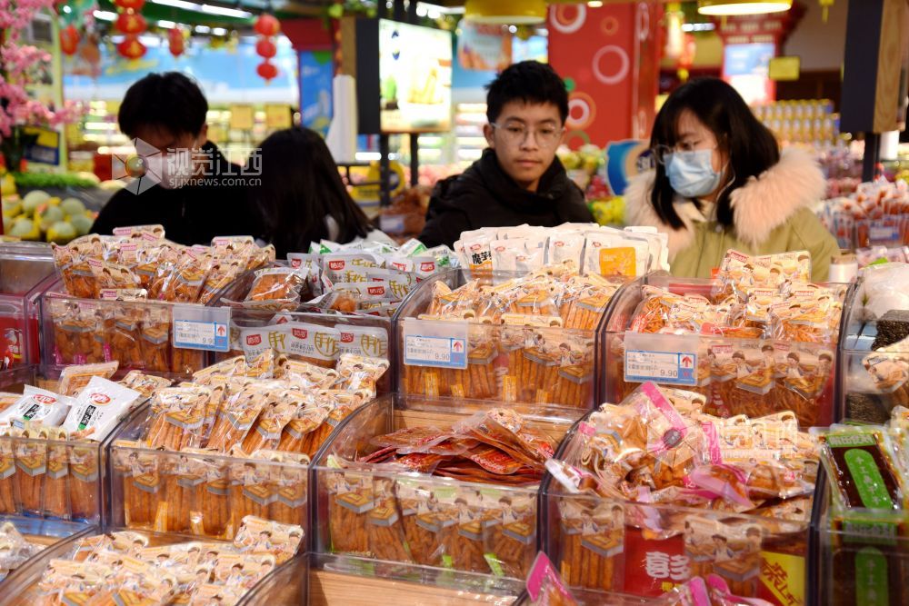 2023年1月26日,农历正月初五,江西省抚州市南丰县各大超市、黄金首饰店前来选购各类物质的市民络绎不绝,春节市场呈现购销两旺的好势头。