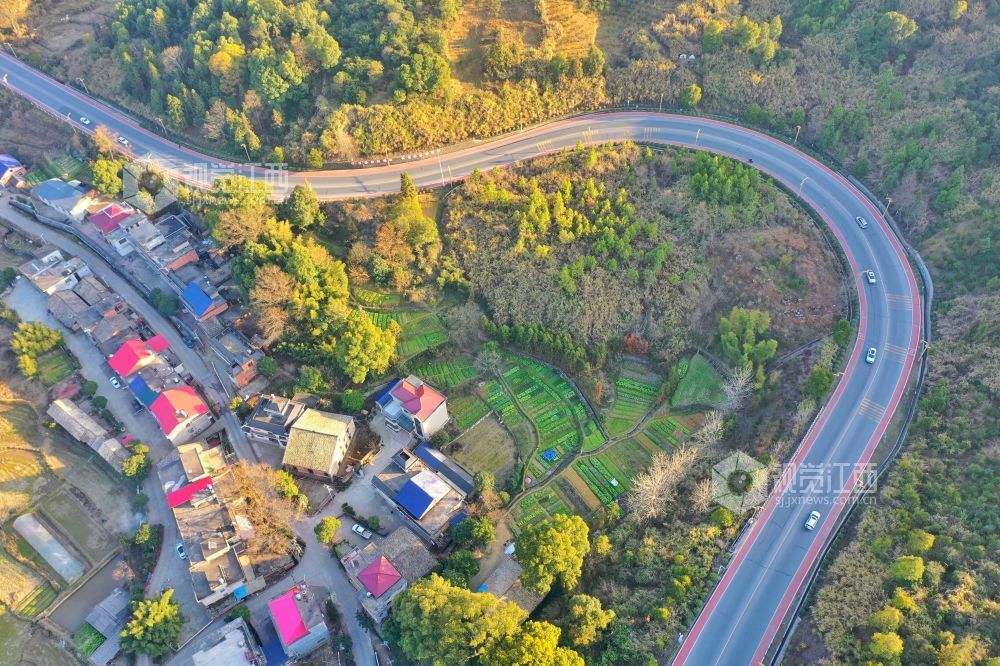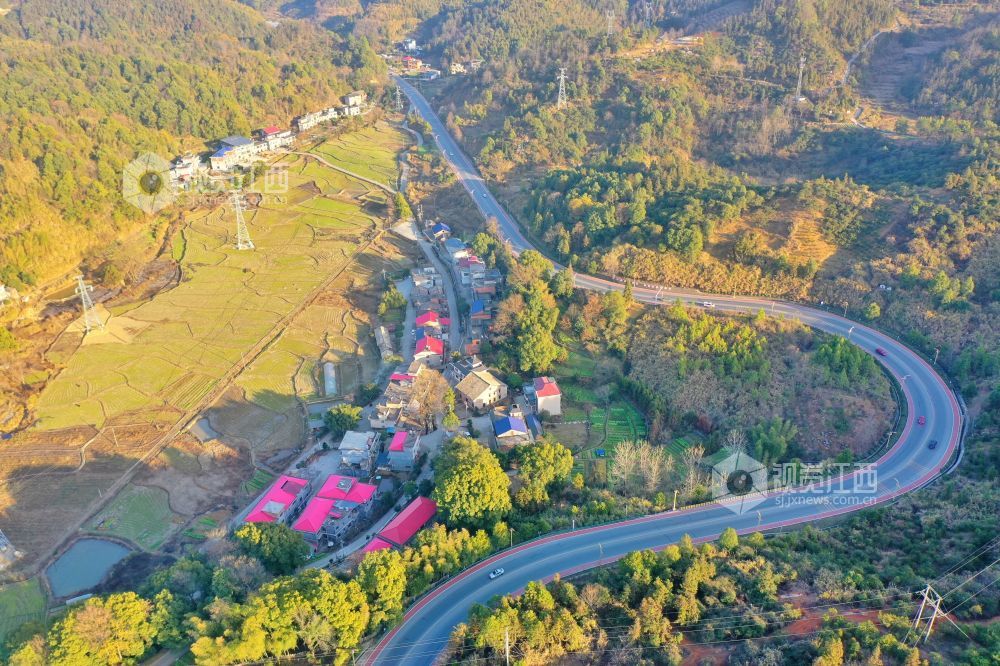 2023年1月29日,在江西省萍乡市芦溪县芦溪镇东阳村,芦万武旅游公路穿村而过,色彩斑斓,景美如画。