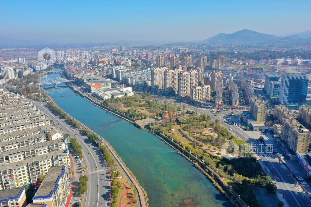2023年1月30日,江西省萍乡市芦溪县袁河两岸山青水绿,美如画卷。