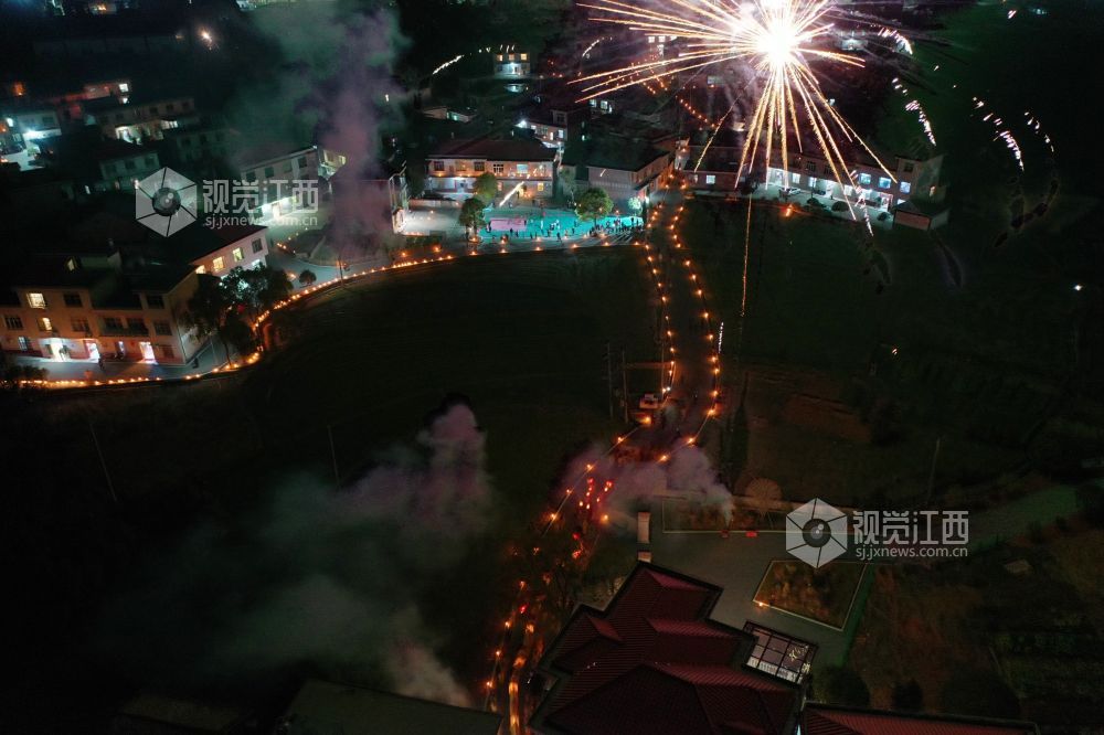 2023年1月30日晚,在江西省萍乡市芦溪县芦溪镇新田村,民间艺人舞着20余米缩龙在夜幕下走村串户,进行游行表演,为千家万户送去新春瑞气与吉祥。