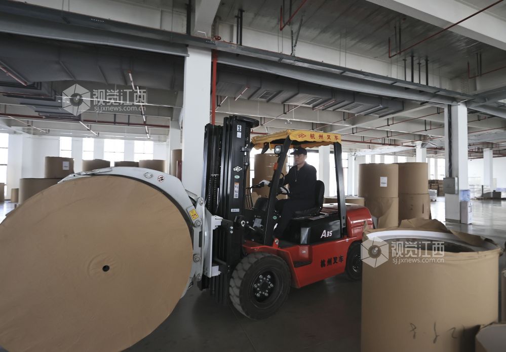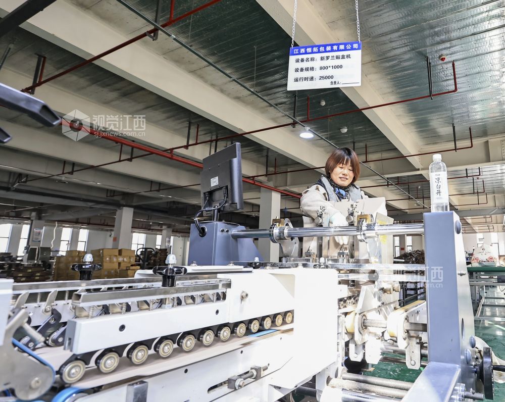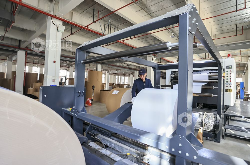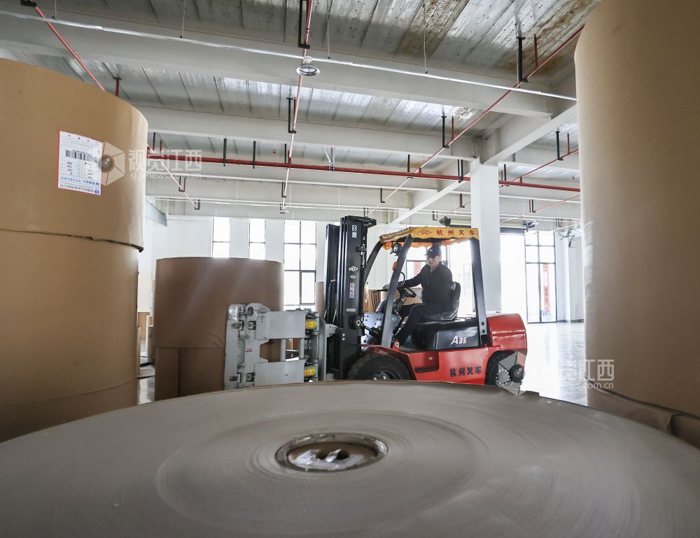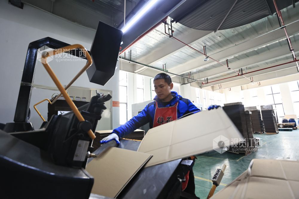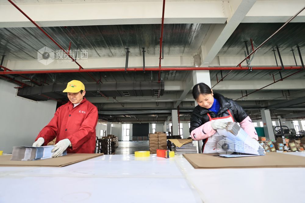 1月30日,江西省湖口县高新园区内一家包装生产企业,工人在生产车间赶制订单产品。
