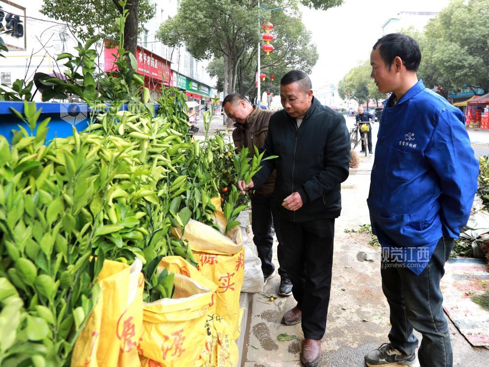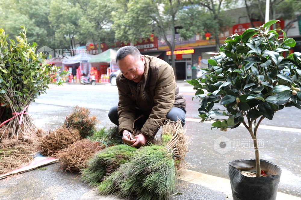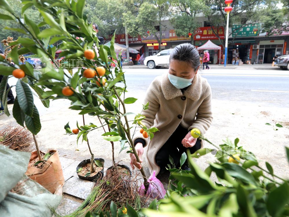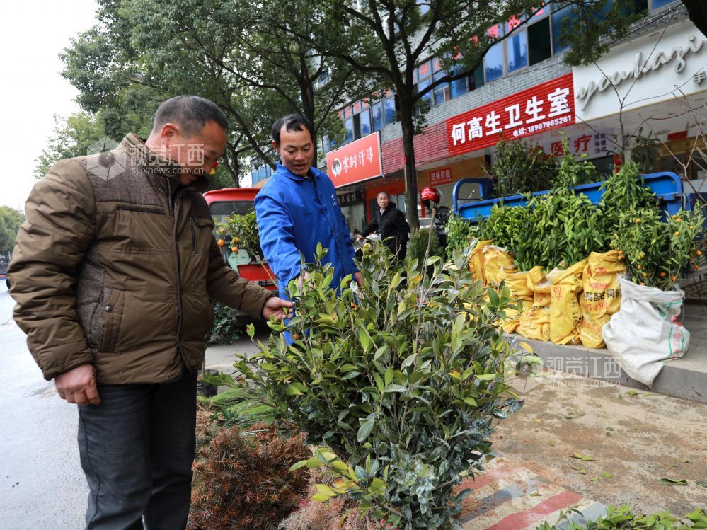 2月1日,江西省吉安市峡江县市民正在苗木市场选购树苗。