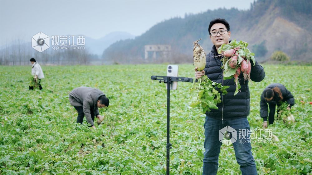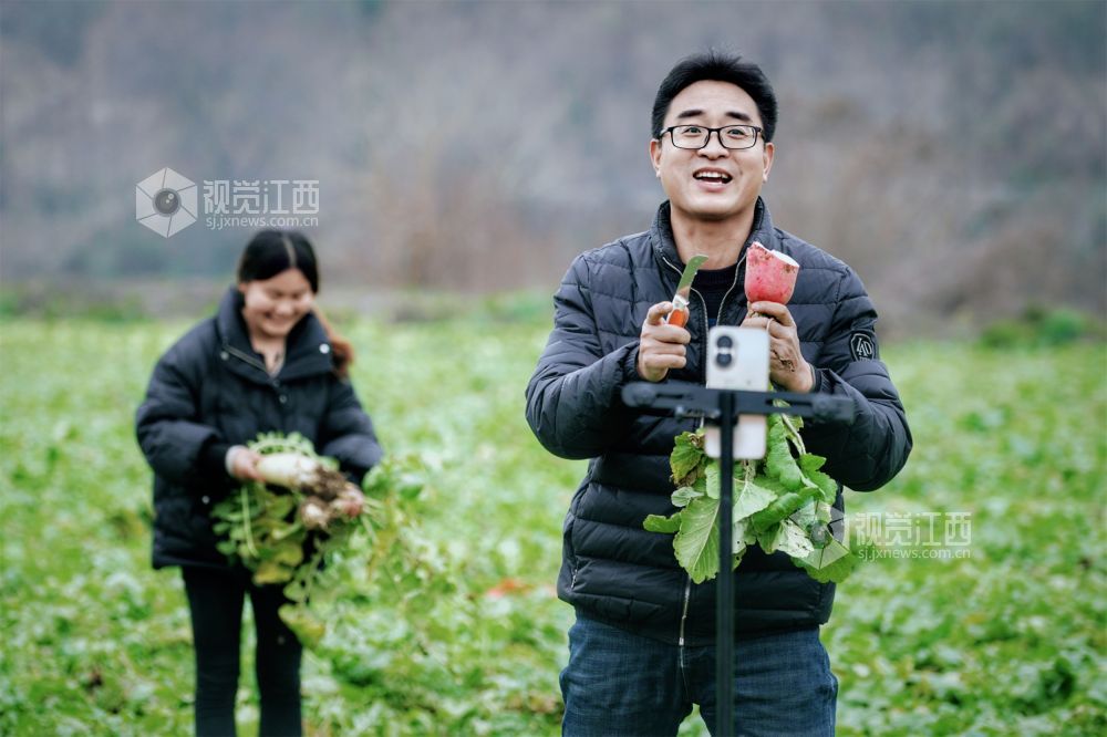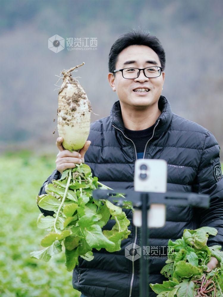 2023年2月2日,为拓宽洋江萝卜销售渠道,江西新余分宜县洋江镇车田村驻村第一书记胡小东把直播间搬进田间地头,客串卖货主播宣传推介本地特色农产品,增加农产品销量,为乡村振兴添能蓄力。