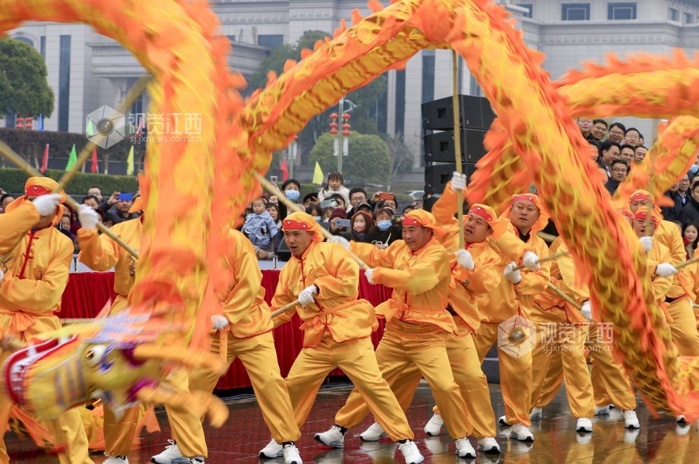 2月5日,江西省九江市湖口县举行舞龙展演活动,吸引了当地民间舞龙队来进行表演,现场人声鼎沸,热闹非凡,感受浓浓年味,共庆元宵佳节。