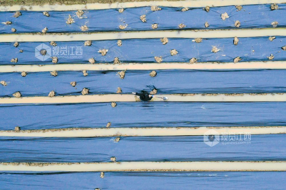 2月6日,春回大地,万物复苏,在江西省泰和县中龙乡黄沙村的槟榔芋种植基地上,村民们忙着种植槟榔芋,翻耕、施肥、覆膜有条不紊地进行着,一幅人勤春早的春耕图正在徐徐展开。