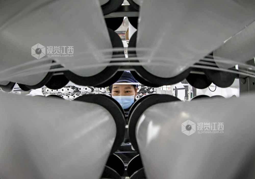 2023年2月6日,江西省九江市湖口县高新技术产业园区一家包装材料企业车间内,工人们正铆足干劲抢时间、忙生产,赶制订单。