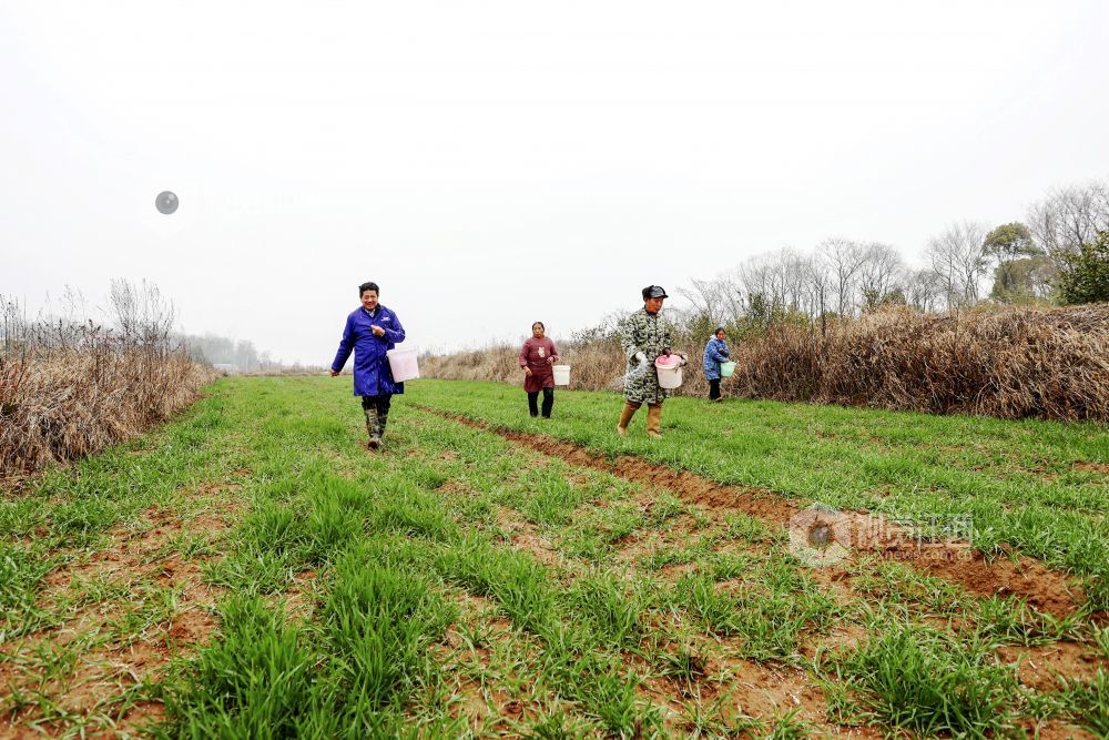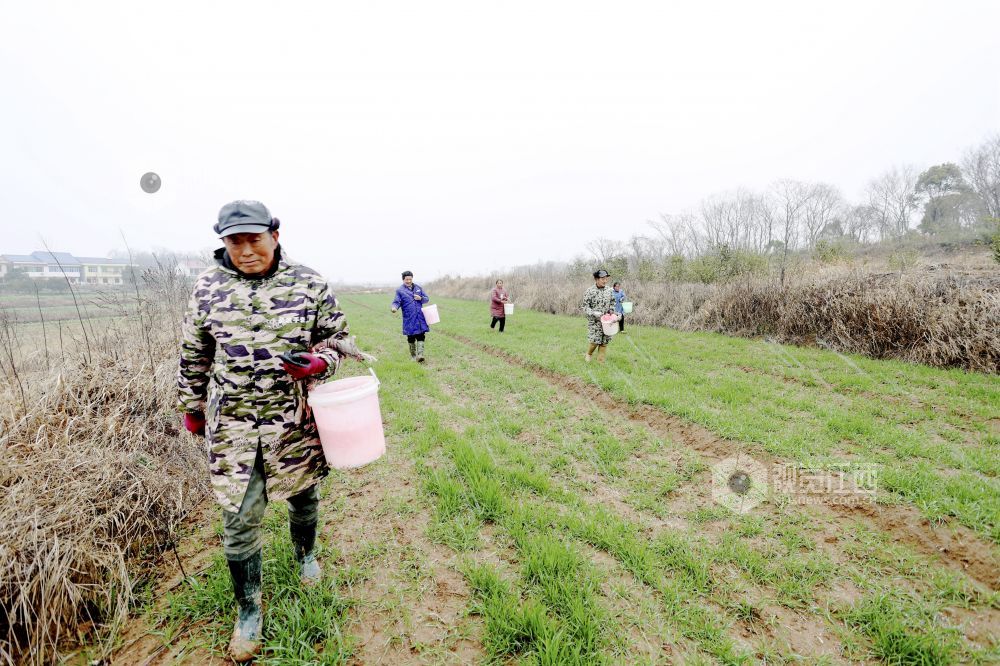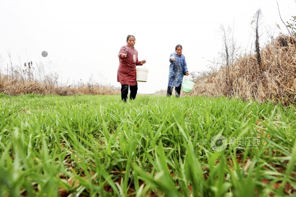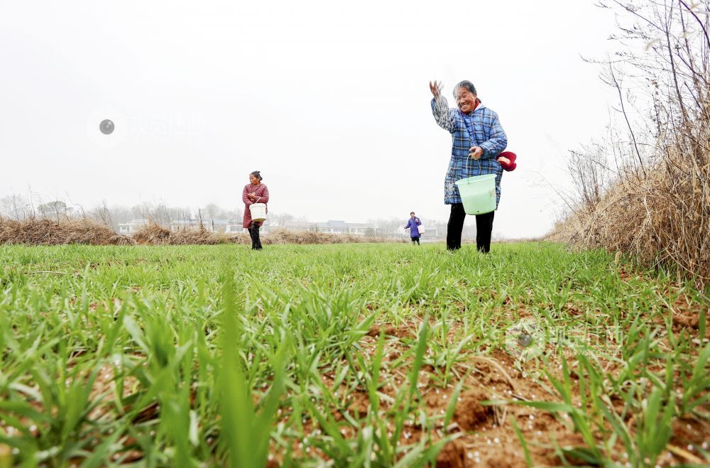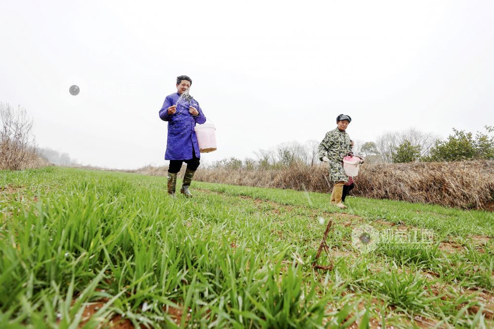 立春过后,湖口县农民抢抓农时对小麦、油菜等农作物进行施肥等管护,田间地头一派忙碌景象。