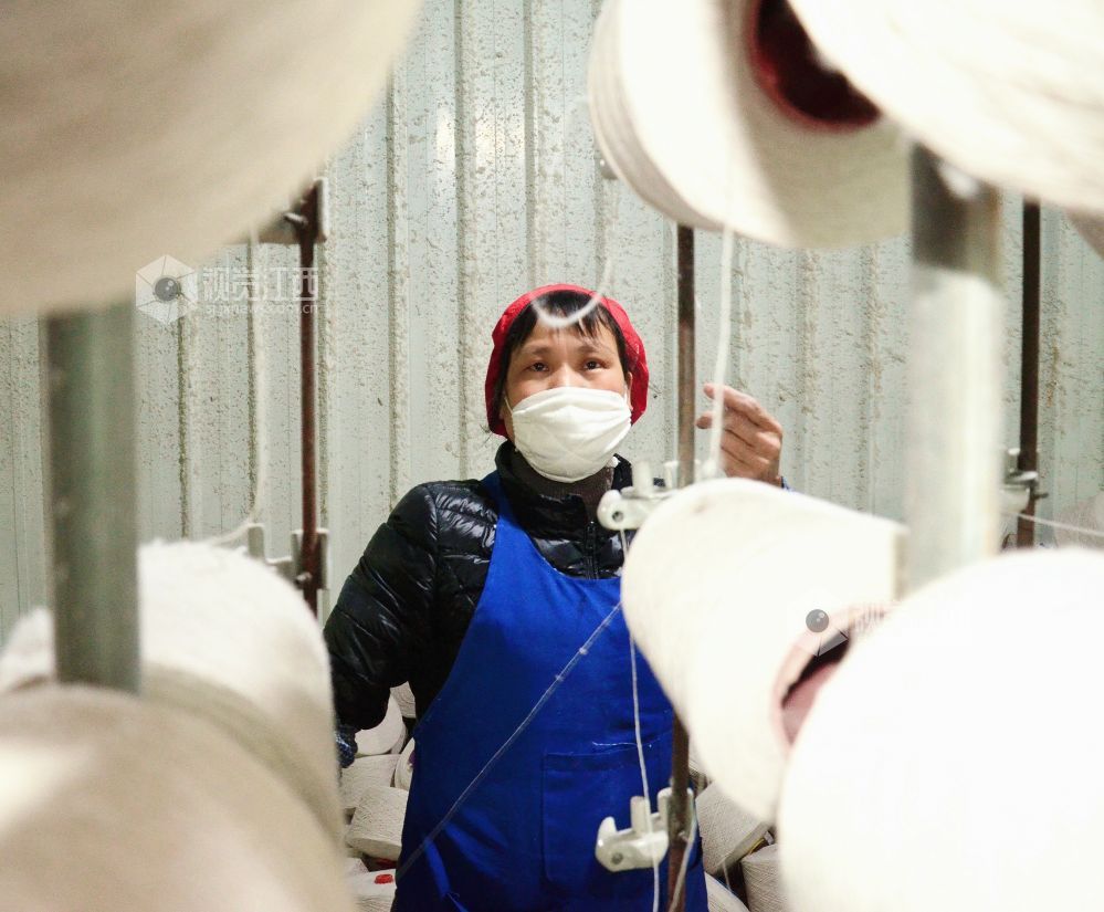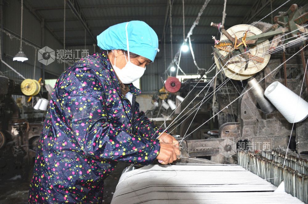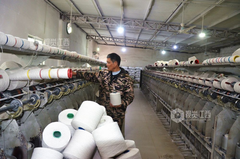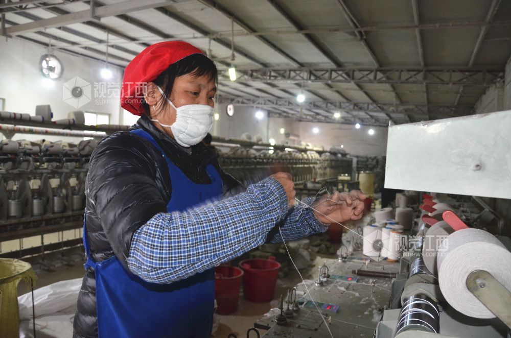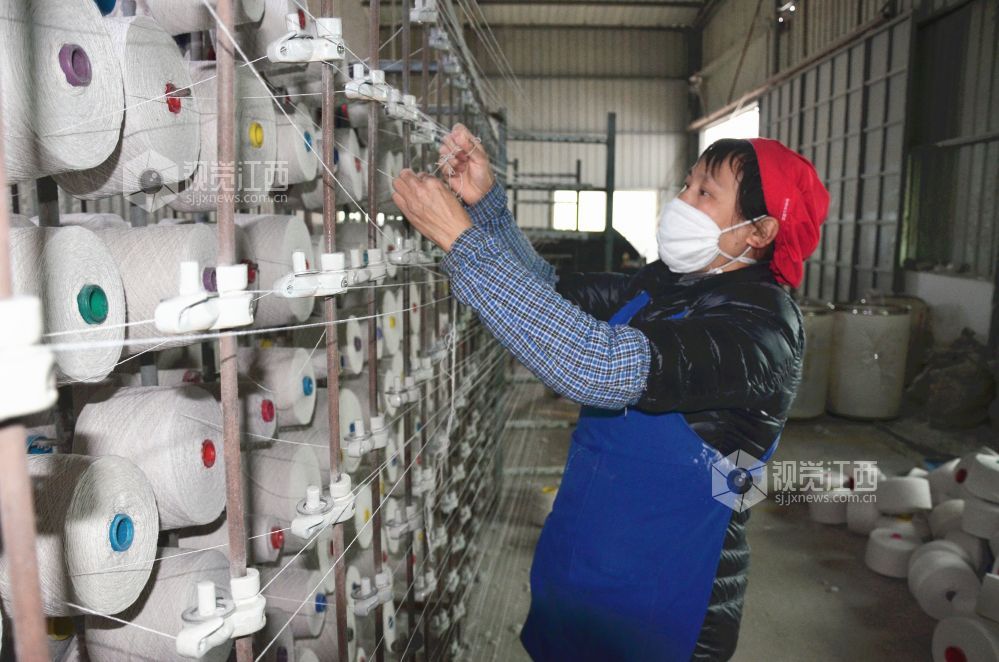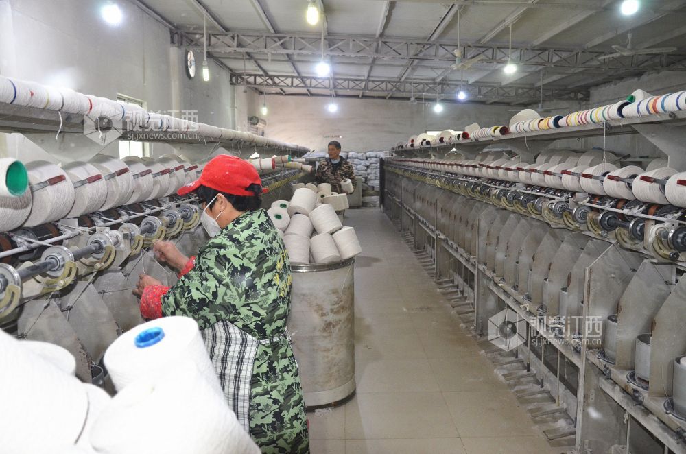 2月8日,在江西省永新县一纺织企业车间,工人在生产线上忙碌。