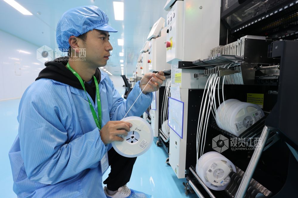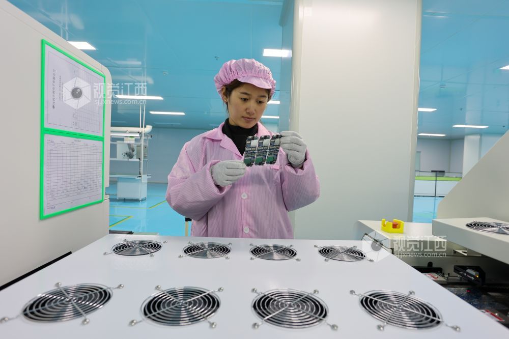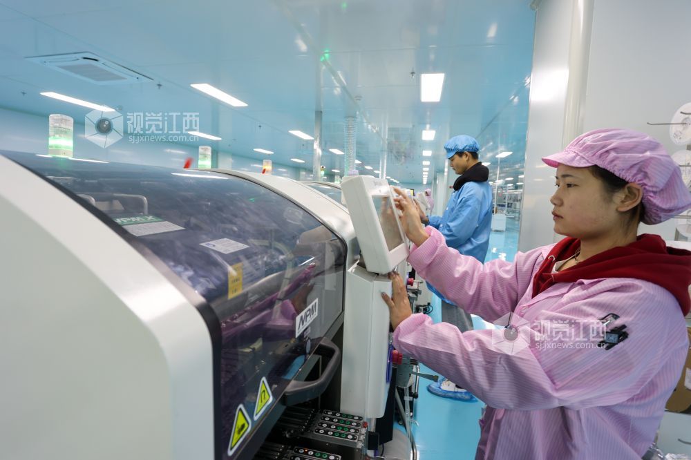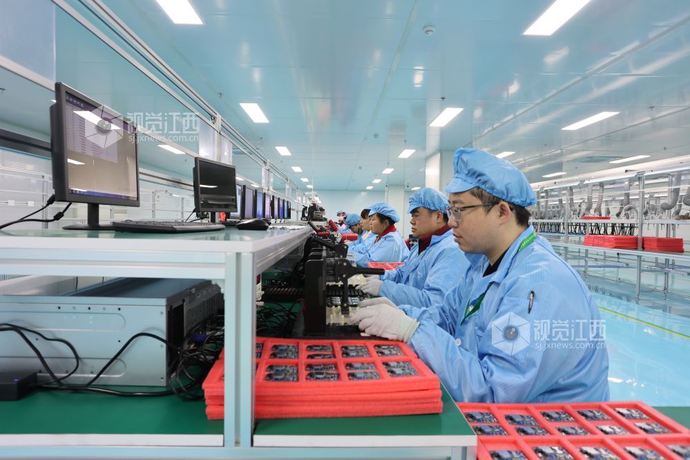 2023年2月10日,江西省瑞昌经开区智造小镇江西丰润电子有限公司生产车间内一派繁忙景象,工人们正在生产线上赶制订单。
