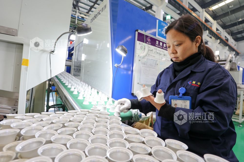 2023年2月14日,江西省瑞昌经开区科技园江西晨丰科技生产车间内,工人们正在智能生产线上赶制国内外订单。