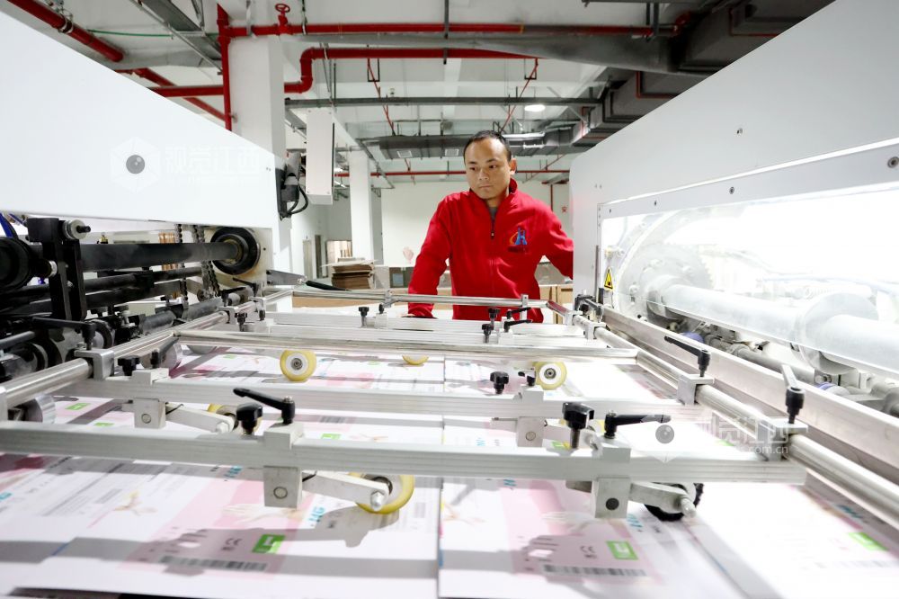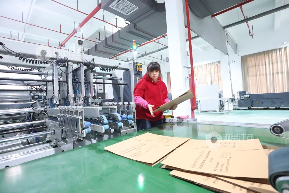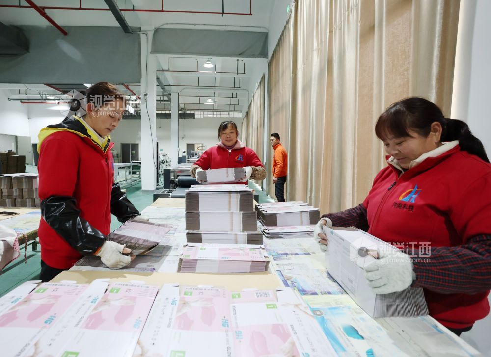 2023年2月14日,江西省九江市湖口县高新园区的一家印刷包装企业生产车间内,工人们正在赶制订单,奋力争夺首季 “开门红”。