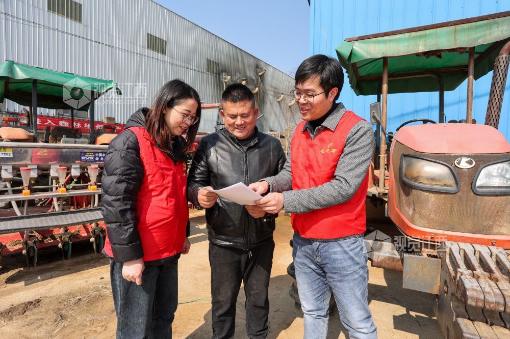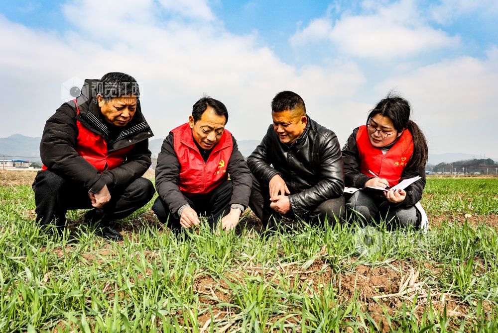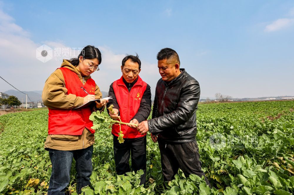 2023年2月15日,江西省瑞昌市横港镇,气象局技术人员在瑞昌市碧野农机专业合作社油菜及小麦种植基地,指导社员如何在低温多雨天气下,做好越冬作物田间管理的技术知识。