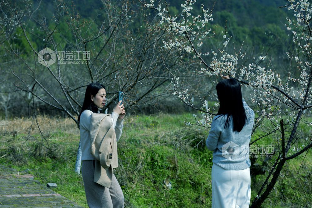 2月18日,江西新余仙女湖区欧里镇白梅村梅花盛开,吸引了新余周边许多游客前来赏梅踏青。