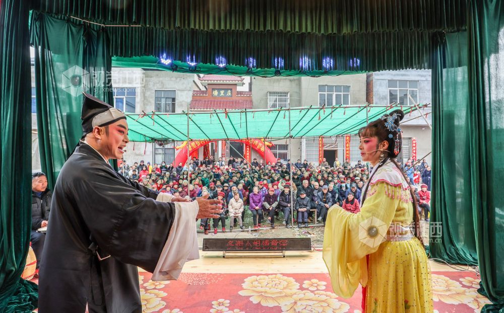 2023年2月19日,江西省瑞昌市武蛟乡塘里张自然村,该市剧团演员正在为村民表演黄梅戏,为群众带来文化大餐。