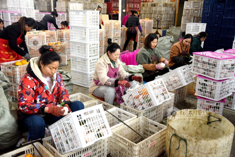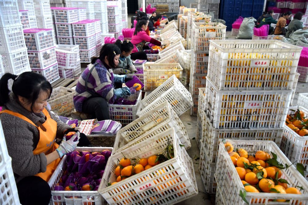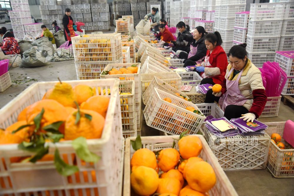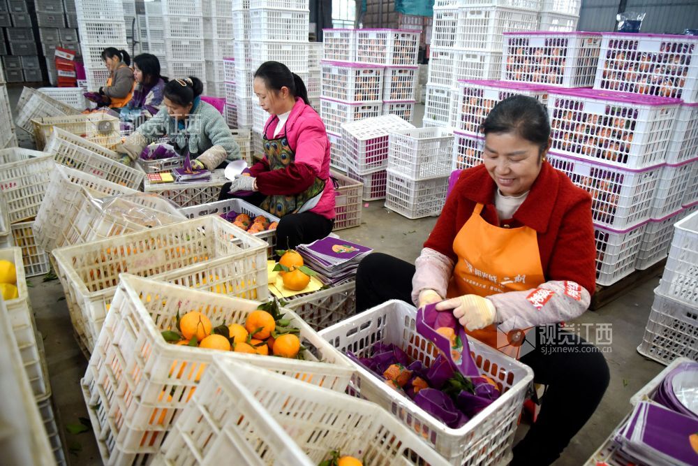 2023年2月19日,江西省抚州市南丰县广盛果品合作社组织农民分拣、加工包装南丰蜜橘以及粑粑柑、沃柑、砂糖橘等多个柑橘品种,准备销往全国各地,以满足市场消费者的需求。