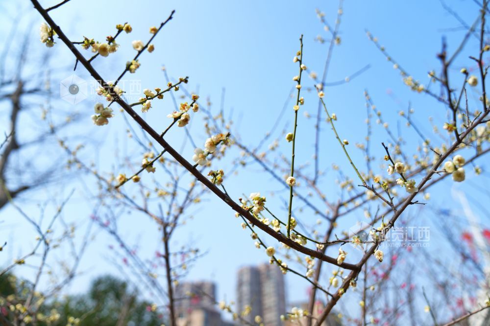 2023年2月21日江西省萍乡市芦溪县芦洲园湿地公园的梅花陆续绽放,生机勃勃,景美如画。近年来,江西省萍乡市芦溪县不断完善城市基础设施建设,合理规划城市生态公园,加强生态环境治理,有效提升群众幸福感。
