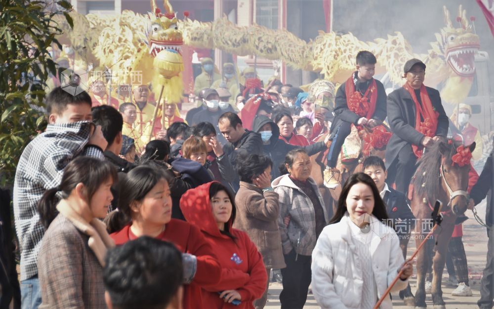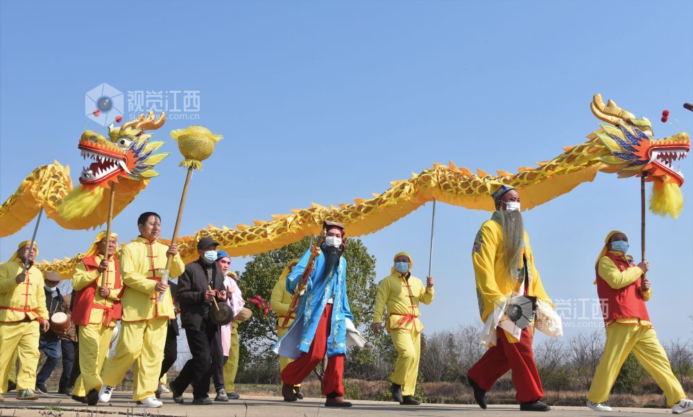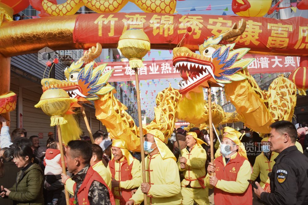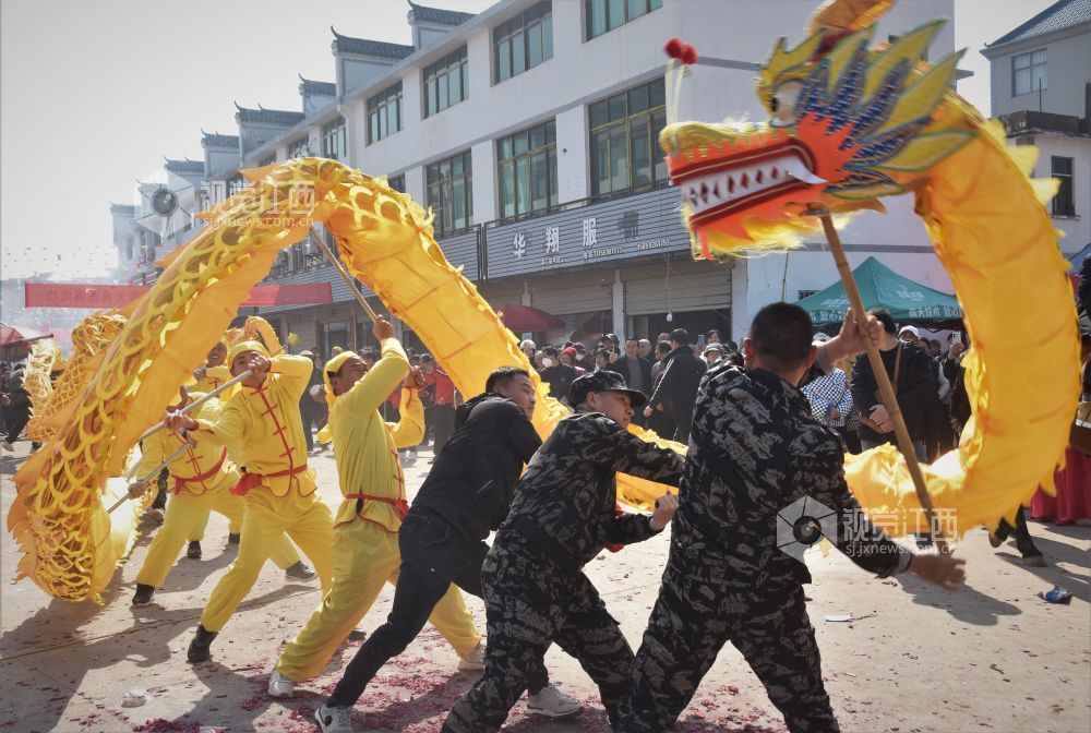 2023年2月21日, 农历二月二民间称为龙抬头。江西省鄱阳县珠湖乡竹湾铺田村车水马龙,热闹非凡,在春光明媚的二月二,这里的村民们打起欢快的锣鼓,舞起腾空而升的长龙,庆贺乡村丰收根植家谱文化的传承,歌颂美好的时代和幸福的生活。