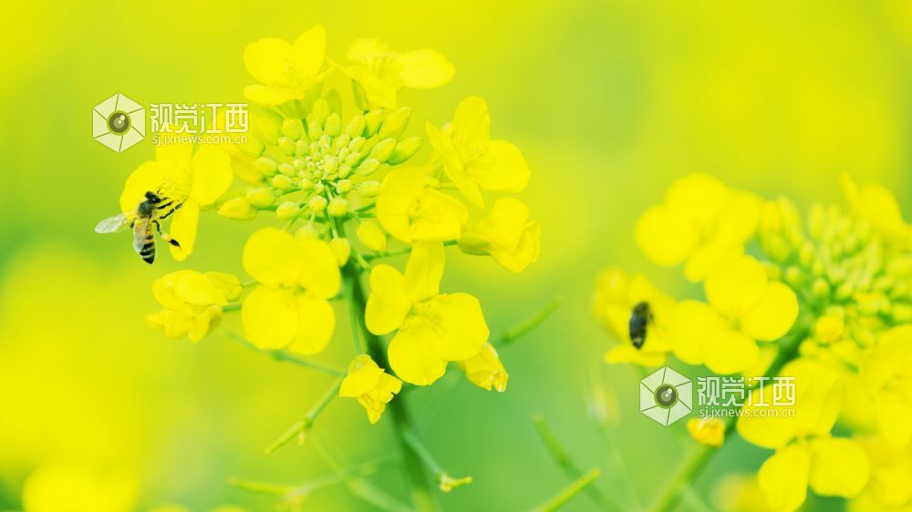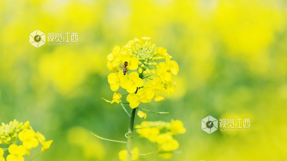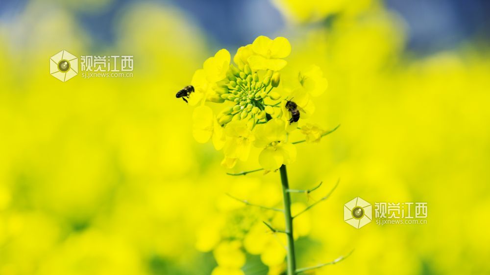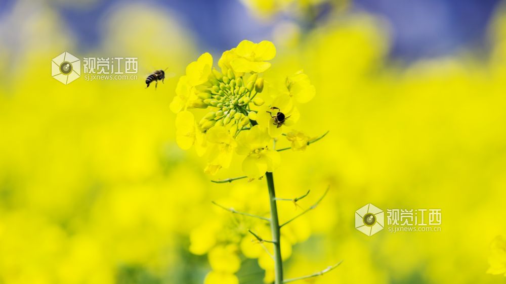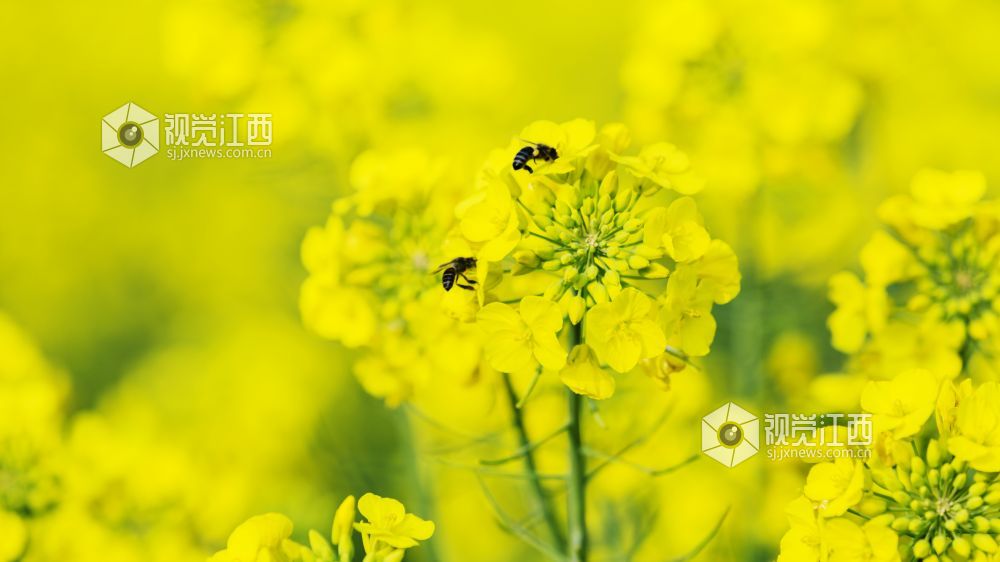 江西新余观巢镇:油菜花开美 蜜蜂采蜜忙