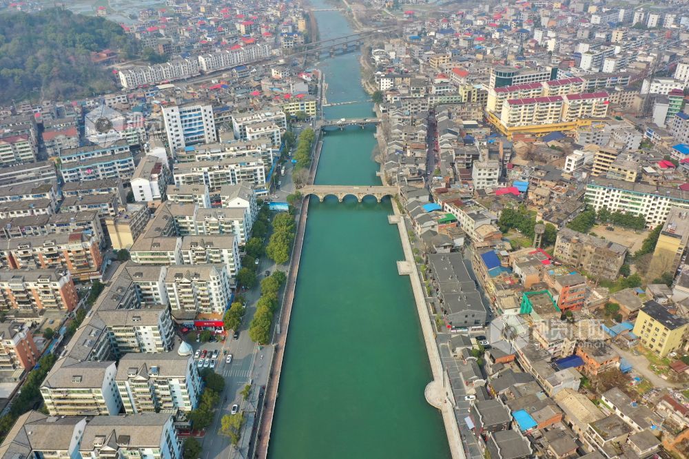 2023年3月2日江西省萍乡市芦溪县县城,一汪碧水穿城而过,绿意盎然,尽现生态之美。