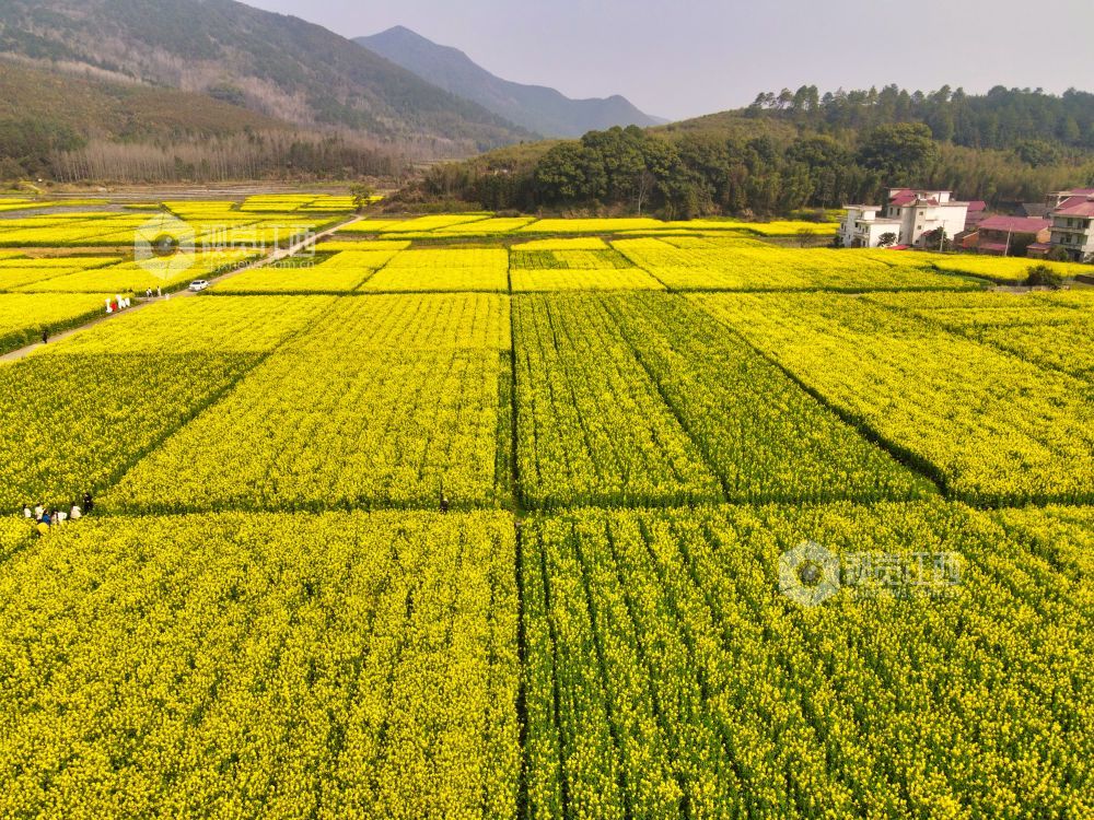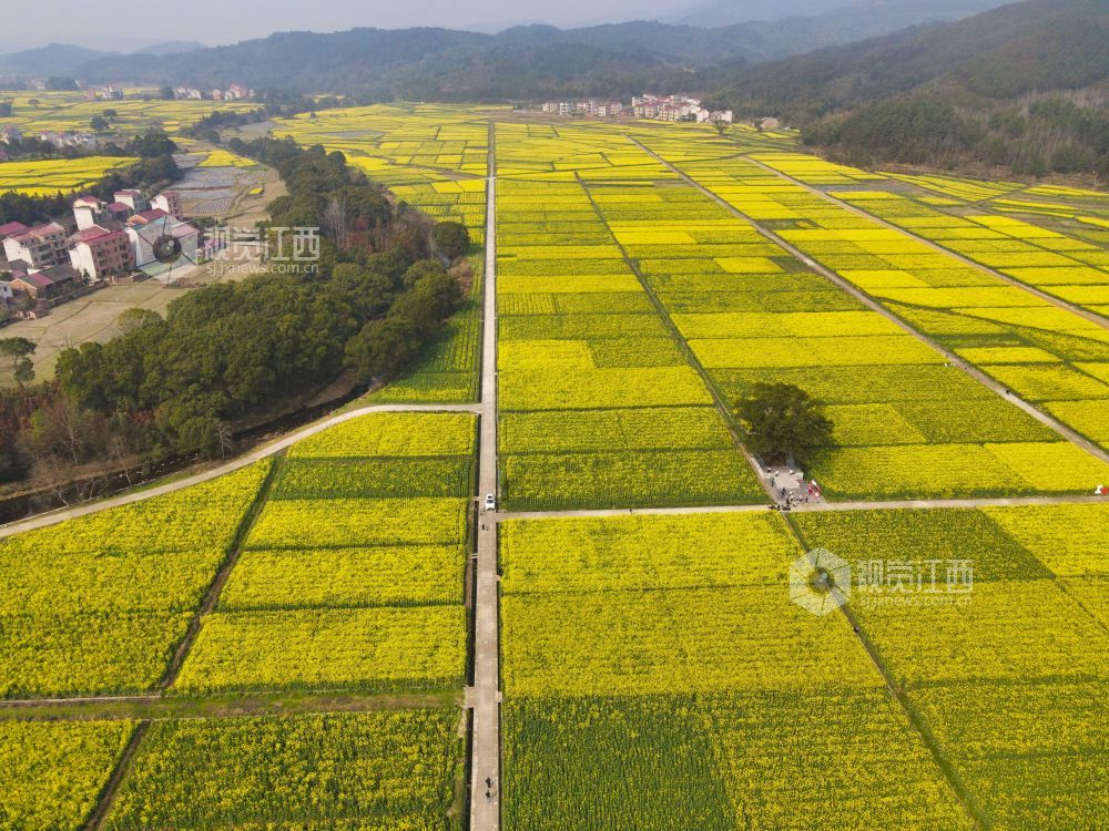 阳春三月,在江西省吉安市安福县洋溪镇,万亩油菜花成片绽放。从空中俯瞰,整齐的油菜花仿佛金色地毯成片铺开,蔚为壮观。