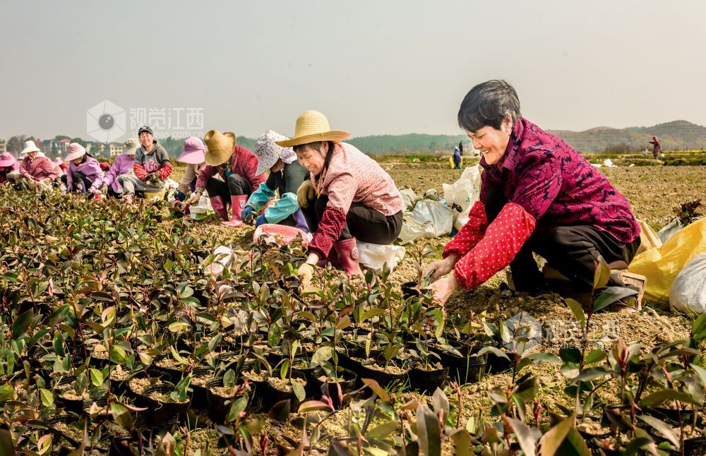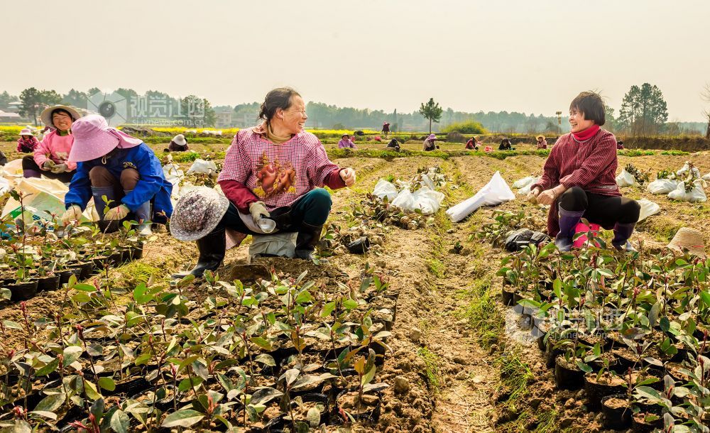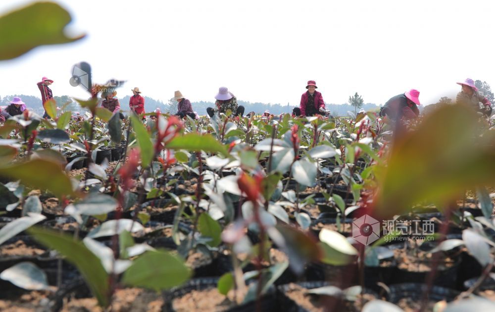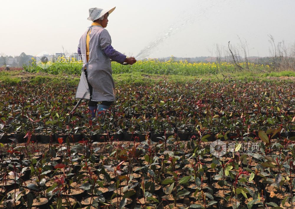 早春时节,在江西省永新县象形乡高田村苗圃基地,当地农民抢抓农时培育幼苗,呈现出一派人勤春早的景象。