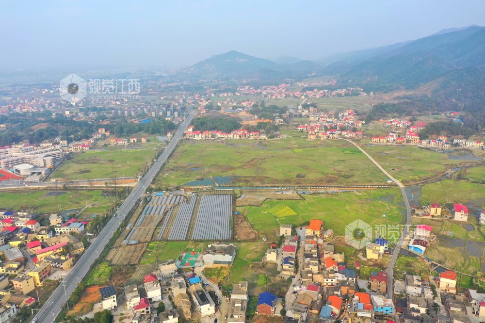 2023年3月4日,俯瞰江西省萍乡市芦溪县芦溪镇高楼村,产业大棚、绿色田野、村舍相互映衬,构成了一幅环境优、产业兴的美丽乡村画卷。