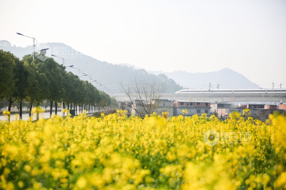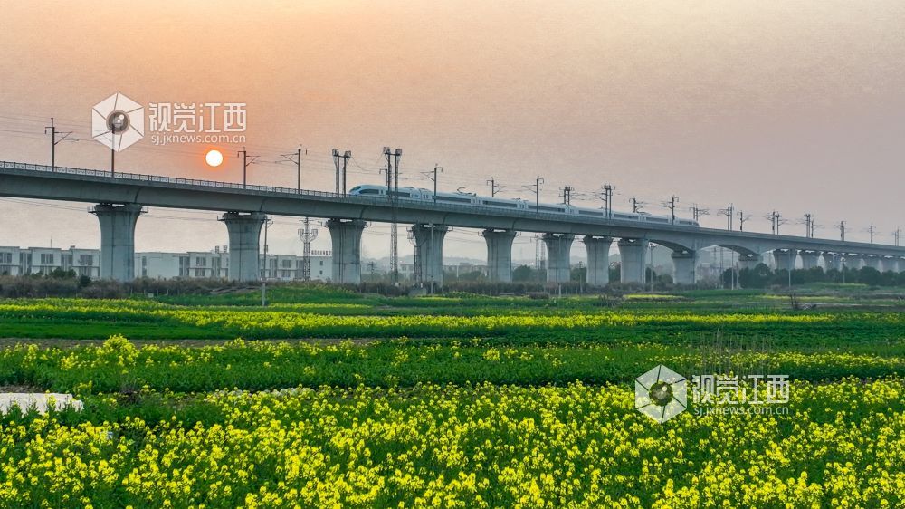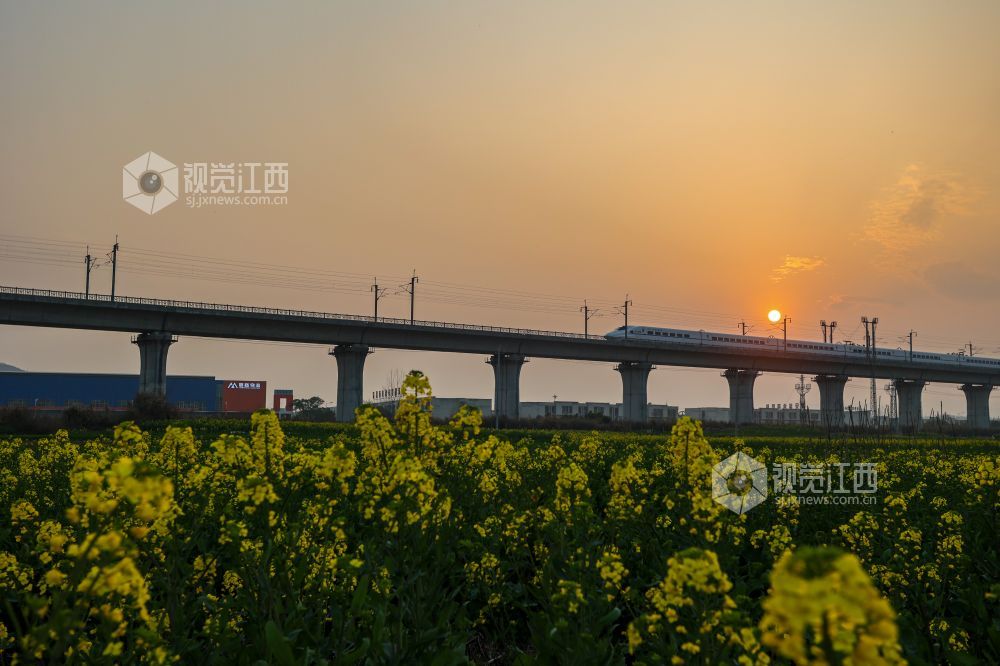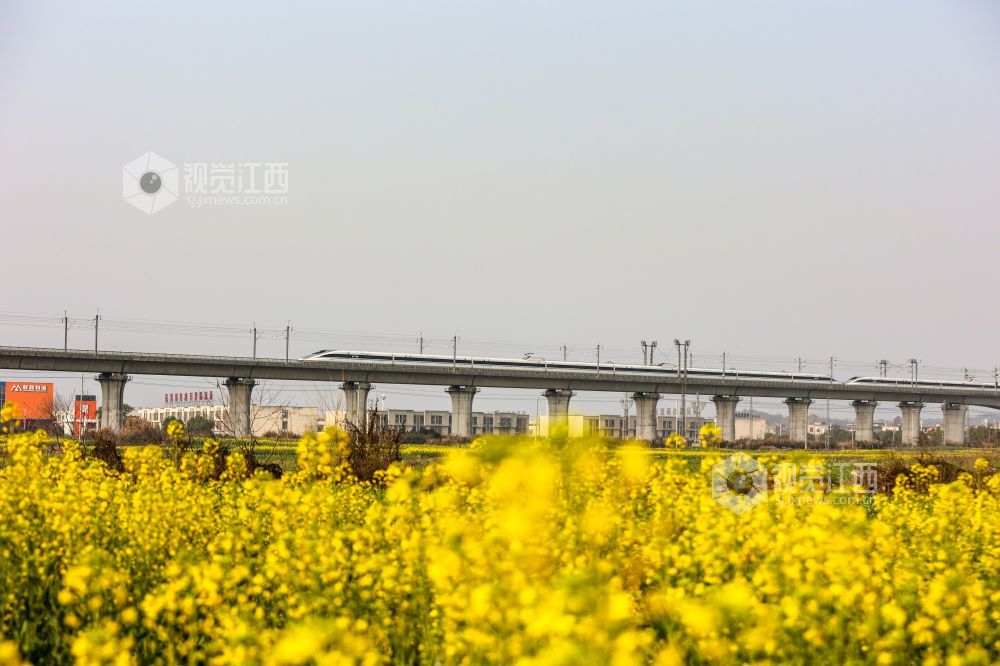 近期随着气温回升,瑞昌市数万亩油菜花竞相绽放,春意盎然,列车穿行其间,成为春日里一道美丽的风景线。