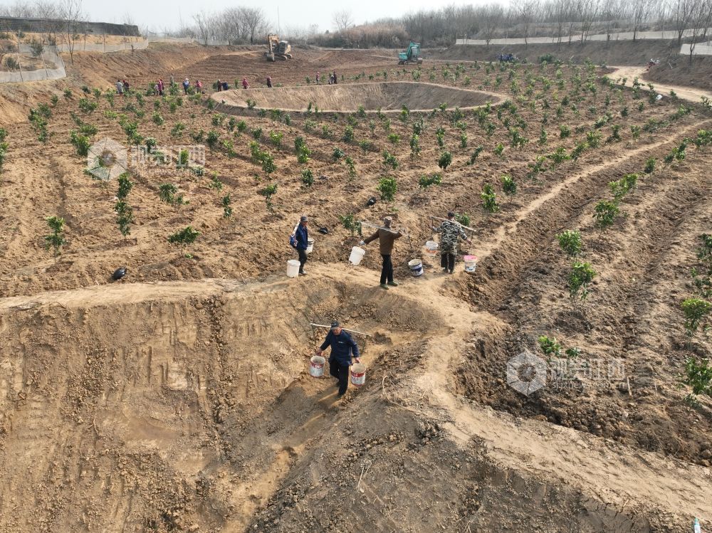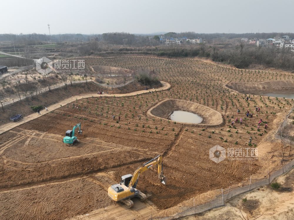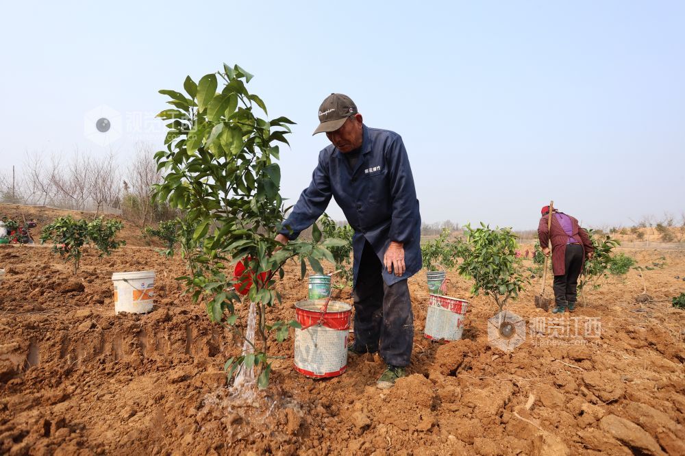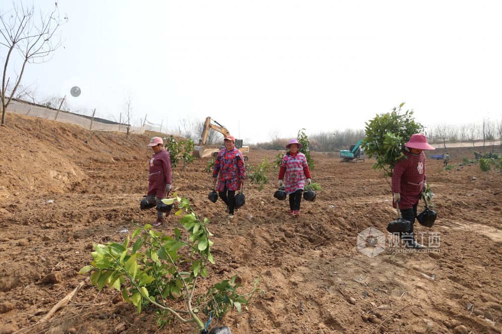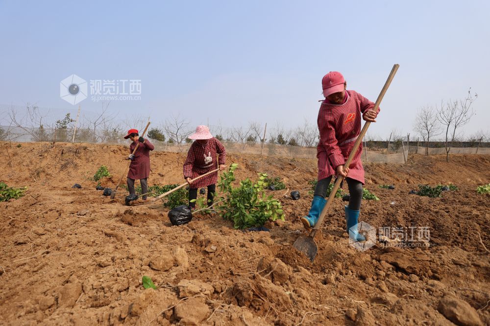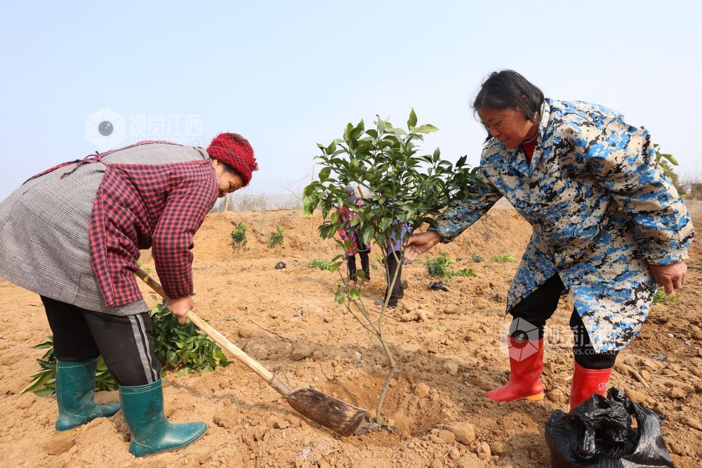 2023年3月1日,江西省九江市湖口县舜德乡油垅村的村民正在栽种红美人果冻橙。
