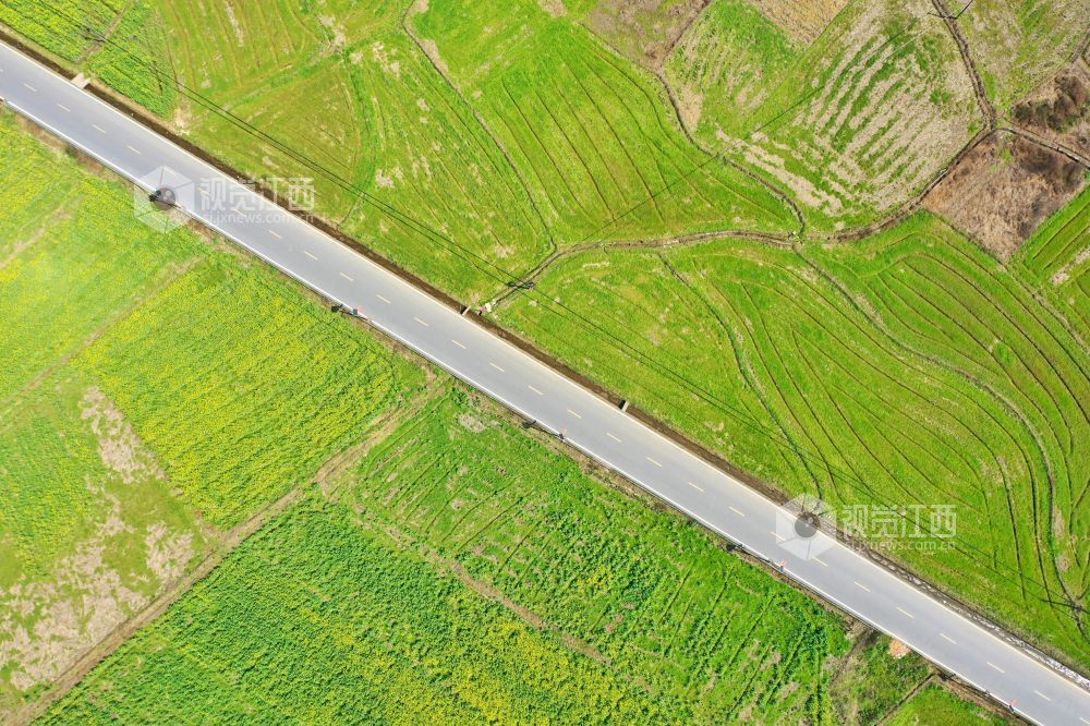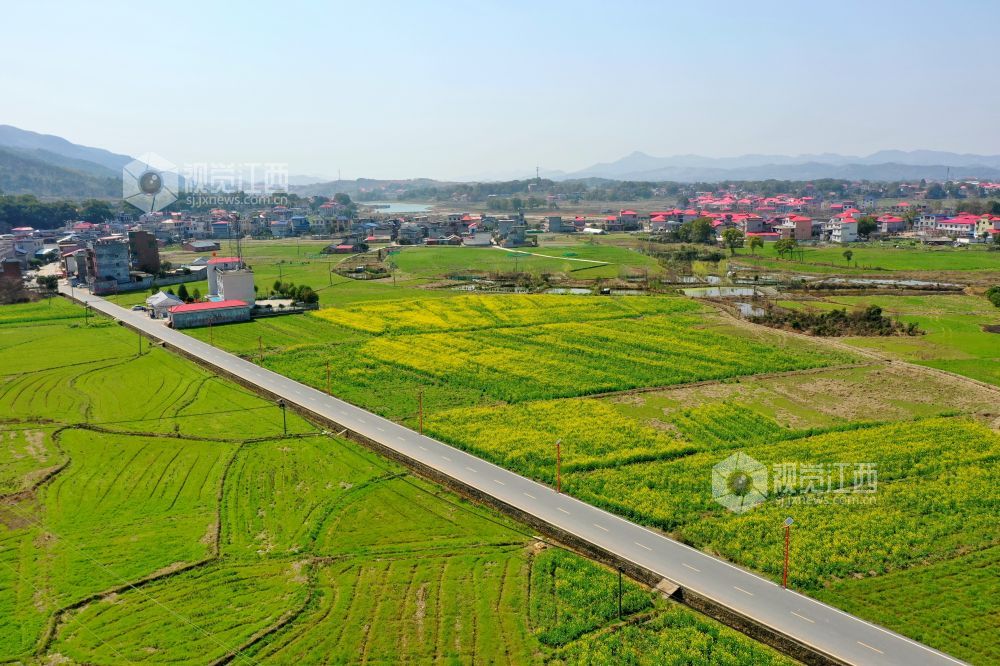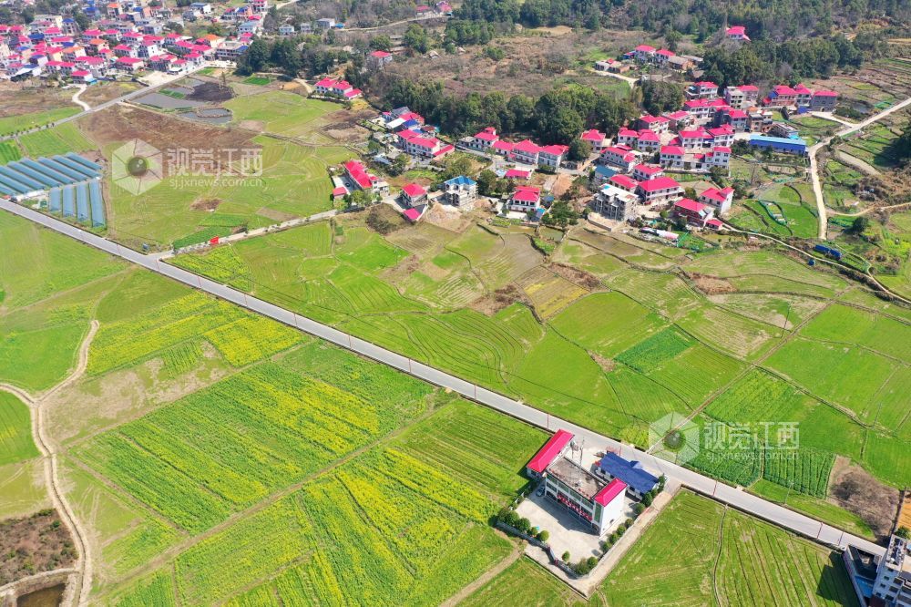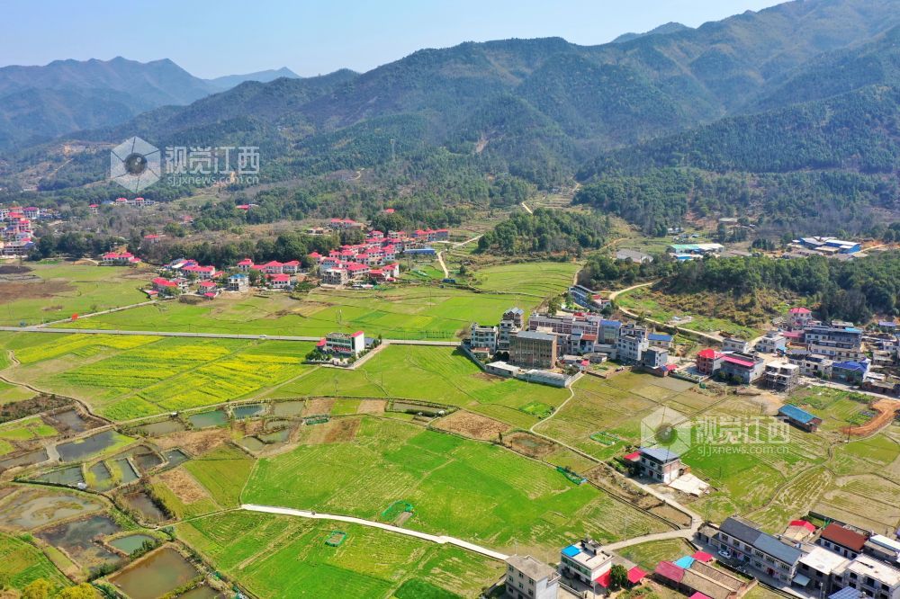 2023年3月6日,航拍江西省萍乡市芦溪县芦溪镇山下村,油菜花竞相开放,与村庄农房相映成景构成一幅春日画卷?