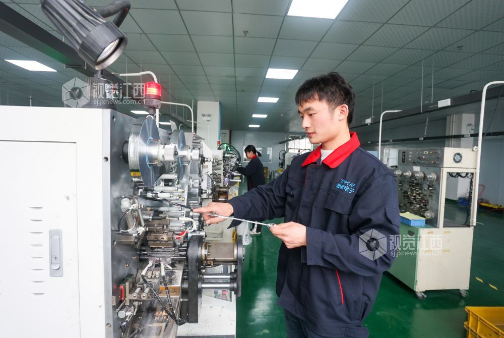 2023年3月8日,江西省瑞昌市智造小镇江西泰容电子科技有限公司车间内,工人在生产线上赶制订单。近年来,瑞昌市出台系列惠企政策,持续加大助企纾困力度,多措并举帮助企业保订单稳生产,激发企业发展动能,着力稳定经济增长。目前,全市企业呈现订单稳定、产销两旺的良好态势。