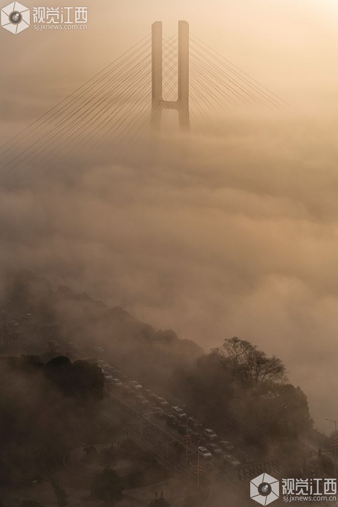 3月10日早上,江西南昌大雾弥漫,宛如仙境。