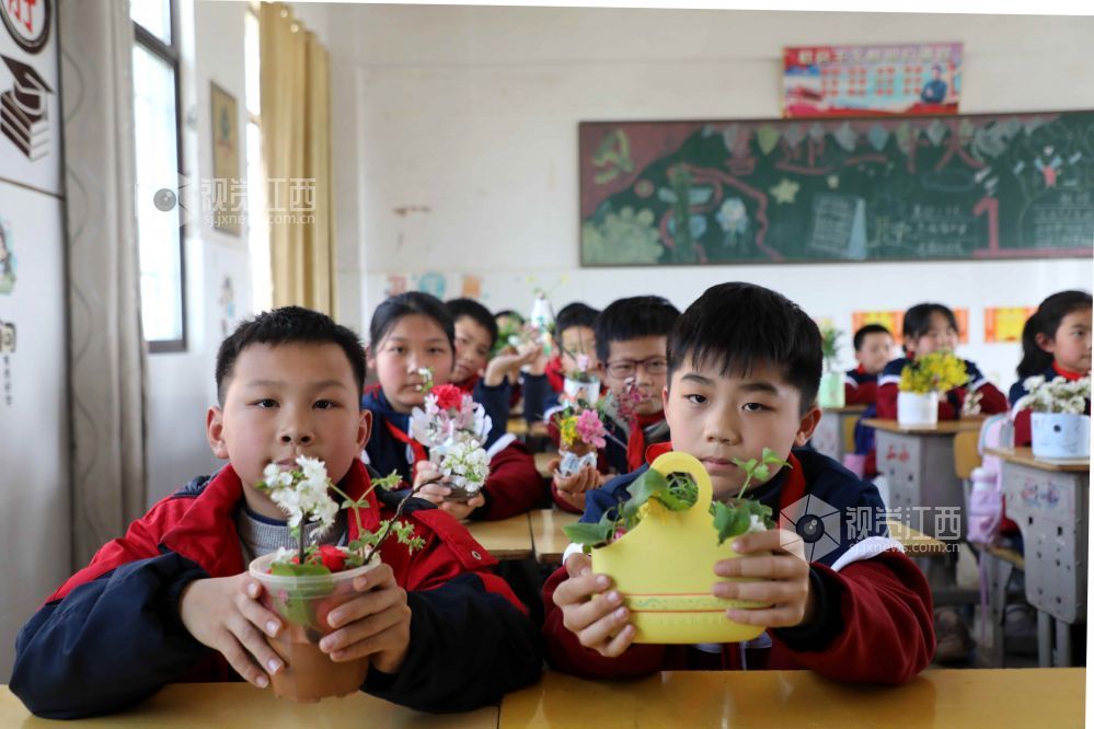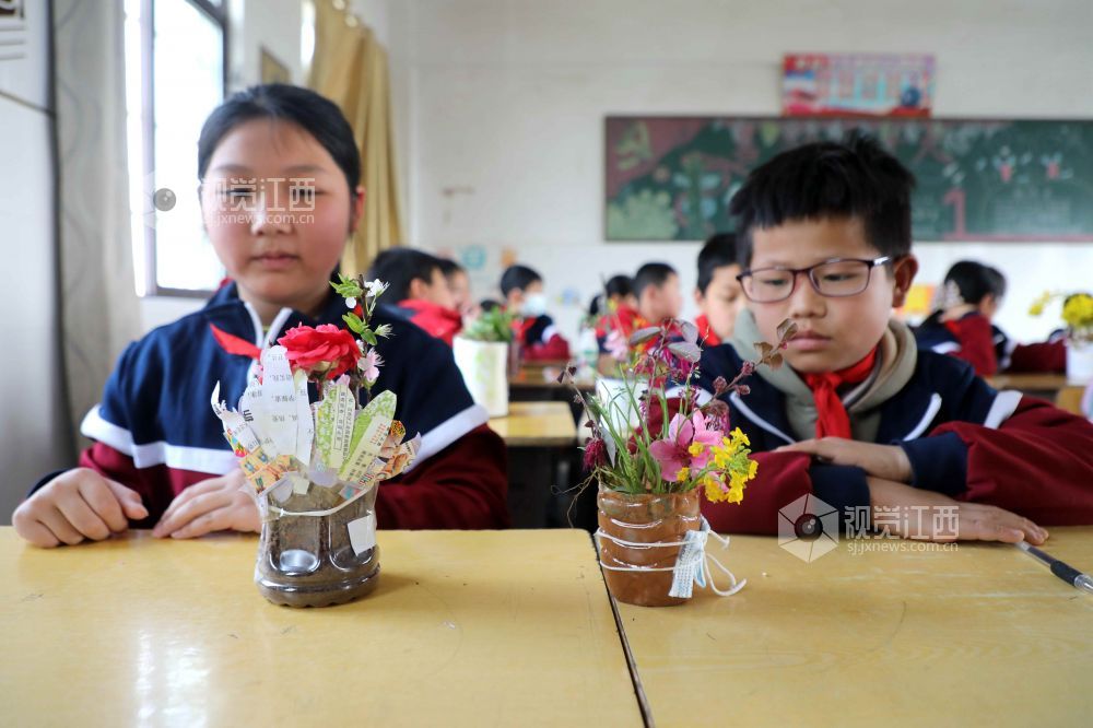 2023年3月10日,江西省吉安市峡江县第二实验小学开展“创意盆栽”迎植树节活动,同学们利用废弃瓶子、塑料泡沫等制作成花瓶,在自制的花瓶里栽种绿植,从小培养孩子们亲近自然、热爱自然的热忱,倡导绿色环保,迎接3月12日第45个植树节。