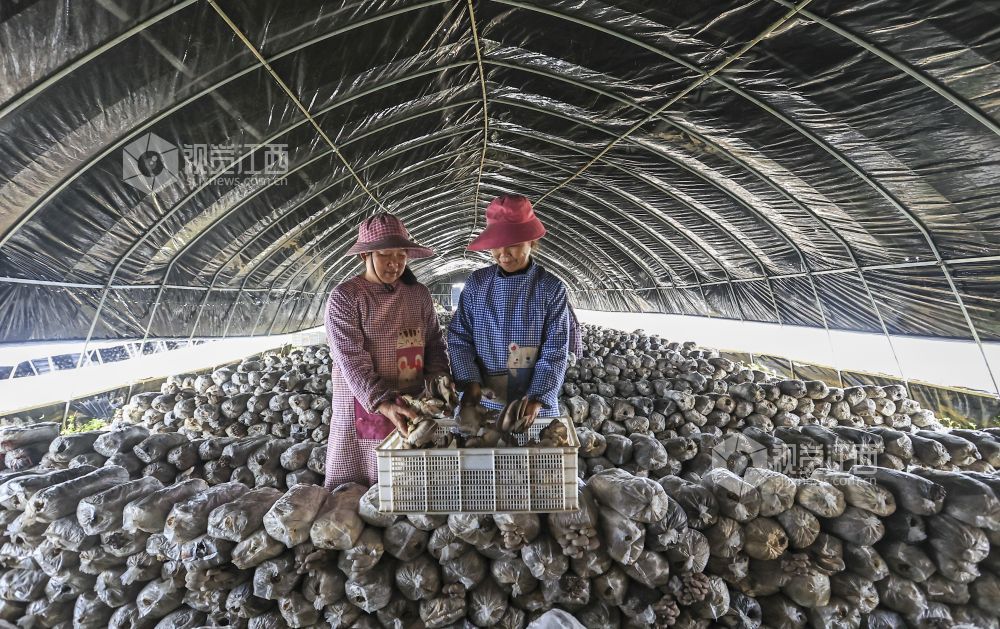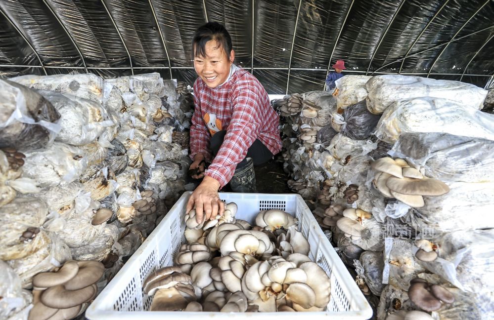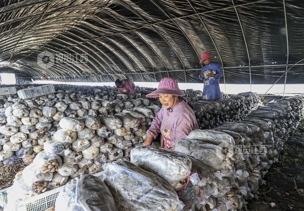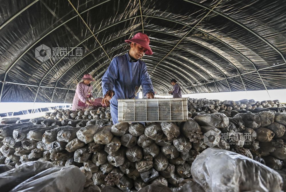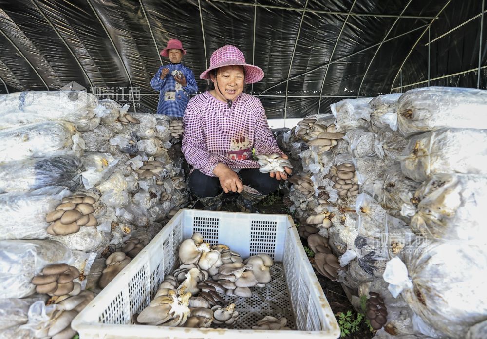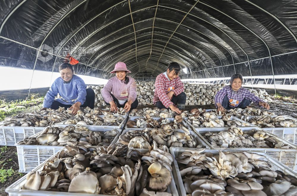 3月11日,江西省湖口县均桥镇文联社区食用菌合作社农户正在收获平菇。近年来,江西省九江市湖口县积极调整农业种养结构,加快推进“一村一品”建设,盘活土地资源,持续壮大村级集体经济。