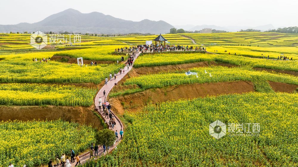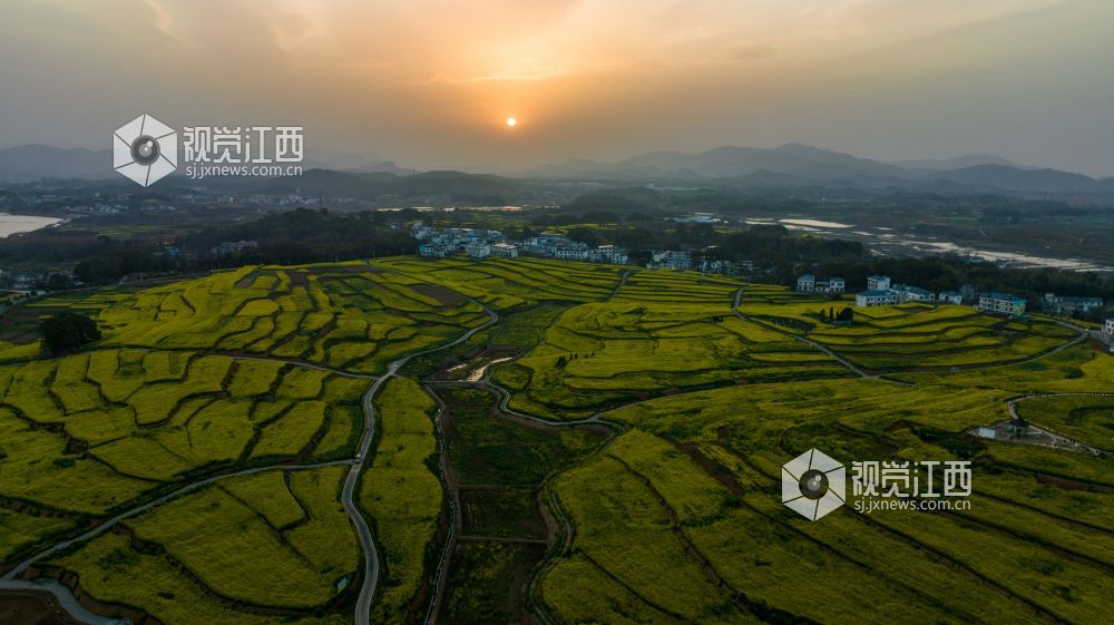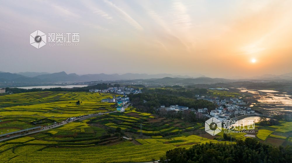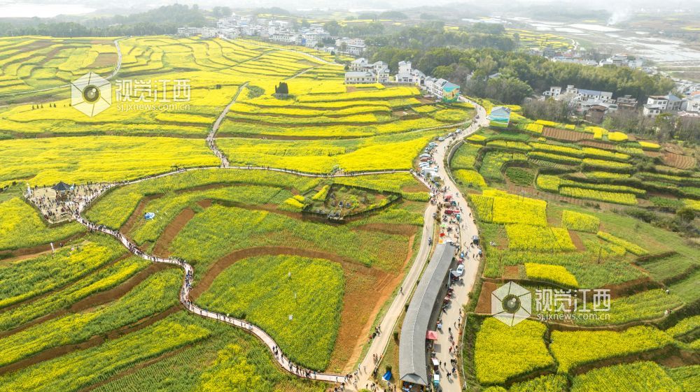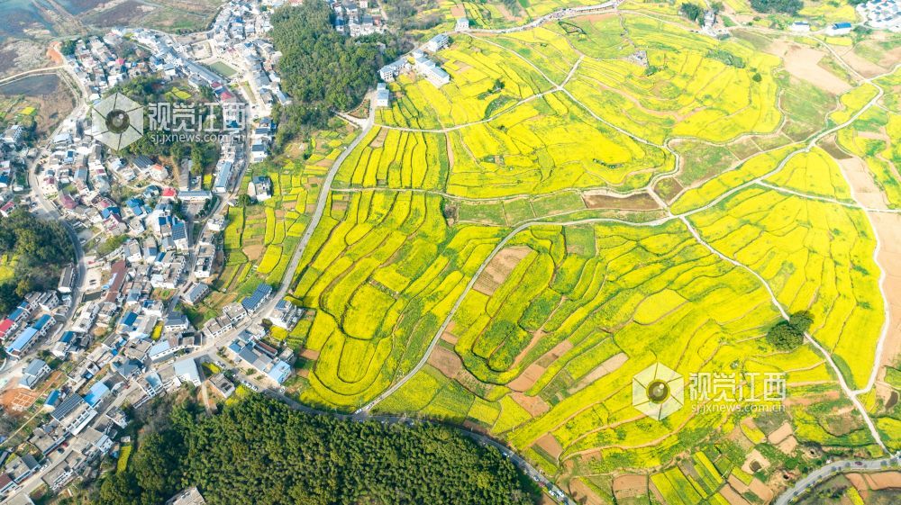 随着天气转暖,瑞昌市武蛟乡万亩油菜花竞相绽放,金黄色的油菜花和绿水青山以及白墙瓦黛的乡村民居交相呼应,勾勒出一幅优美的春日画卷。