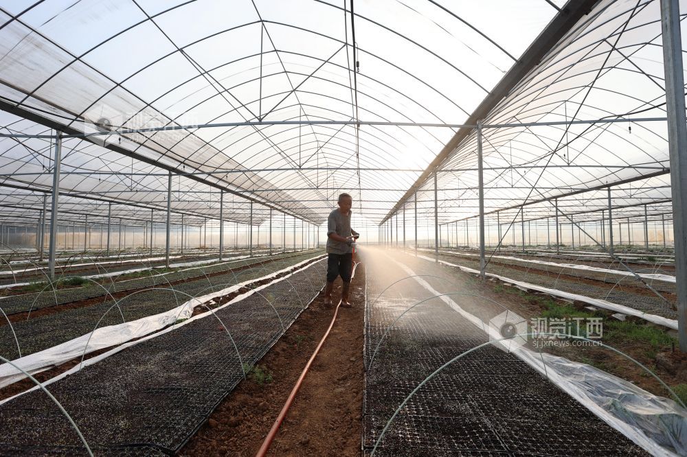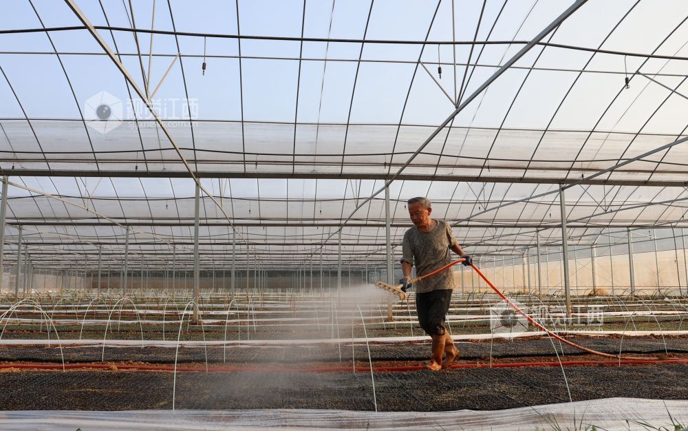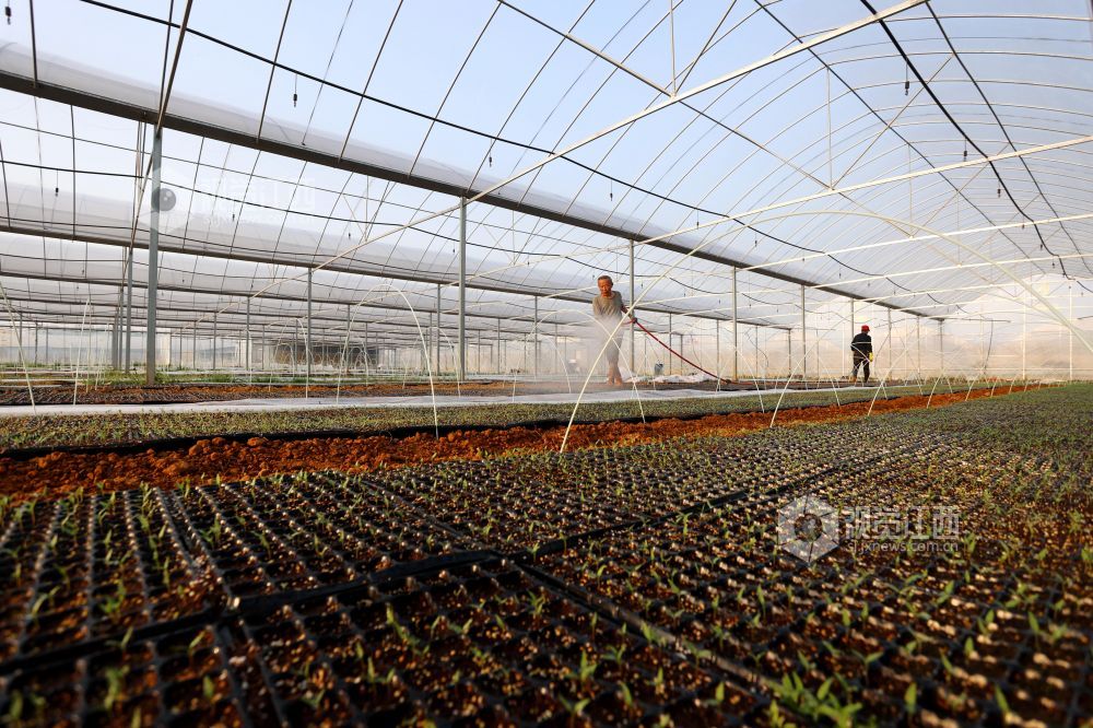 2023年3月9日,江西省九江市湖口县流泗镇红星村现代农业产业园蔬菜大棚内,村民们正在对朝天椒幼苗进行洒水管护。近年来,湖口县以党建为引领,充分利用资源优势、生态优势,着力发展设施蔬菜农业,推进蔬菜产业向规?;?、科学化发展,提升“菜篮子”品质,为产业发展、村民增收致富注入新动能,助力乡村振兴。