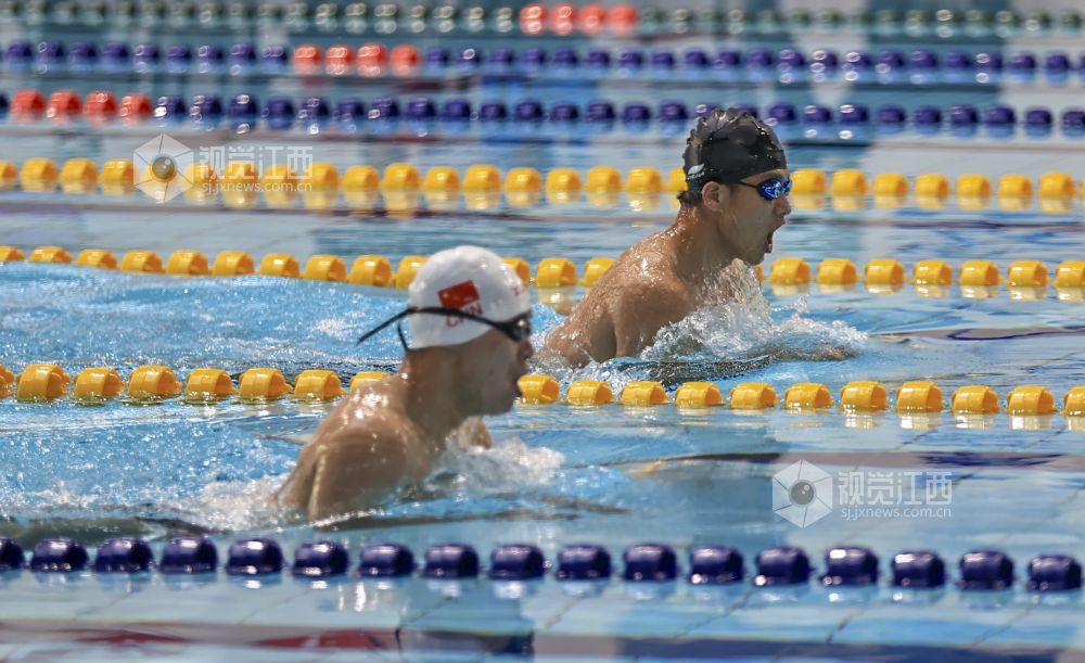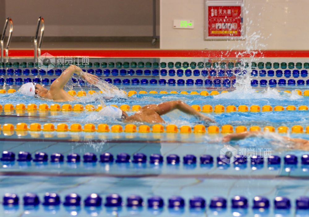 3月14日至15日,江西省第十六届运动会学校部(高校组)游泳比赛在江西省九江市湖口县文体中心游泳馆举行,运动员正在劈波斩浪。来自全省的27所高校代表队共200多名运动员参赛。
