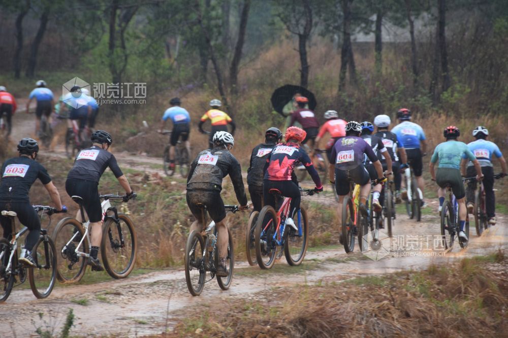 比赛当天,来自鄱阳、南昌、余江、乐平、宜春、德兴等县市自行车骑行爱好者一路伴着春雨绵绵,选手们不畏风雨袭扰,赛道泥泞,个个精神饱满,迎风冒雨奋力前行,向着山顶冲刺。