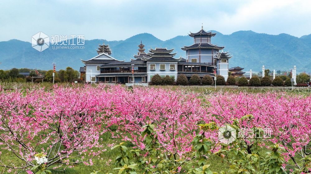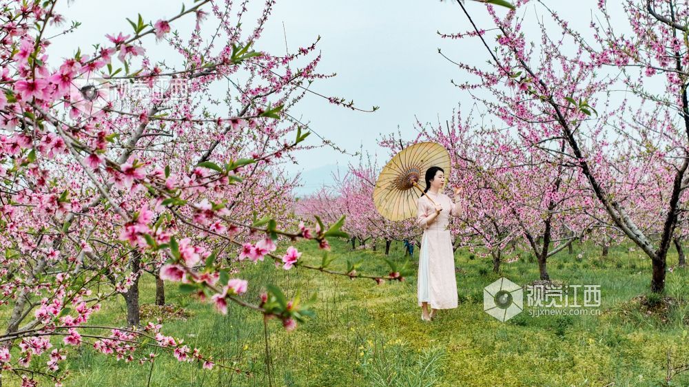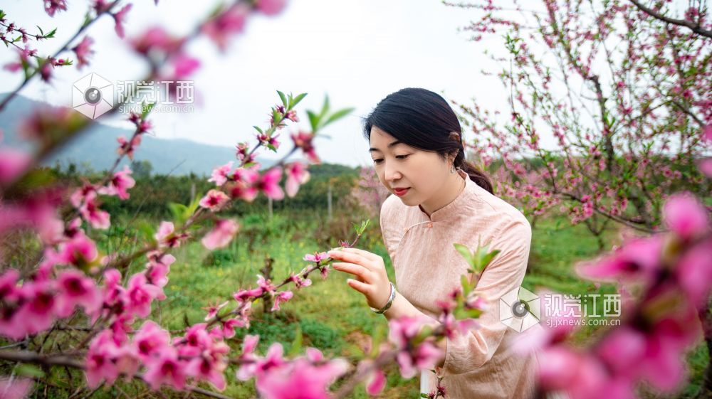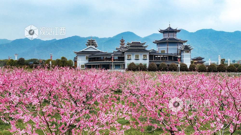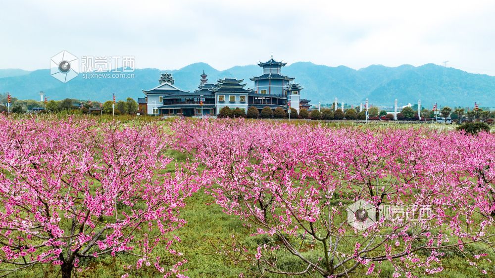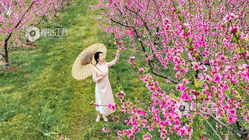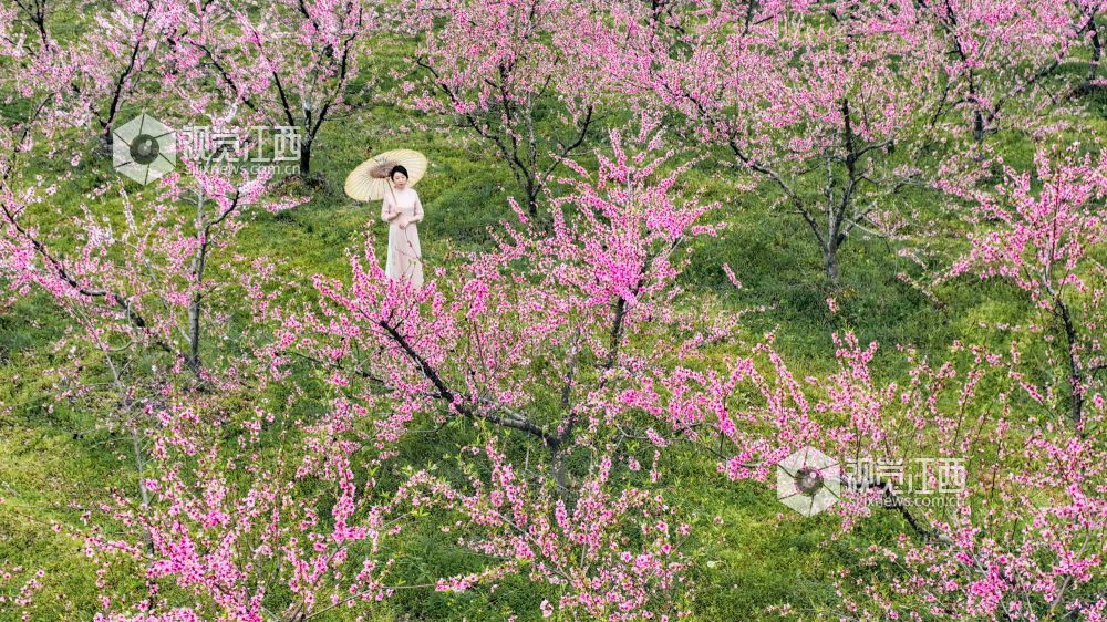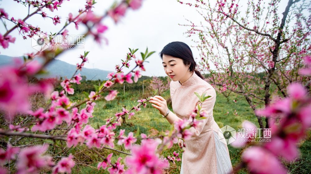 桃花春色暖先开,明媚谁人不看来。近日,在江西省吉安市峡江县金坪民族乡新民村桃林基地,桃花竞相绽放,点缀在乡野之间,漫山的桃花迎风起舞,美景如画,慕名而来踏青赏花的人们尽情感受着春天的气息。