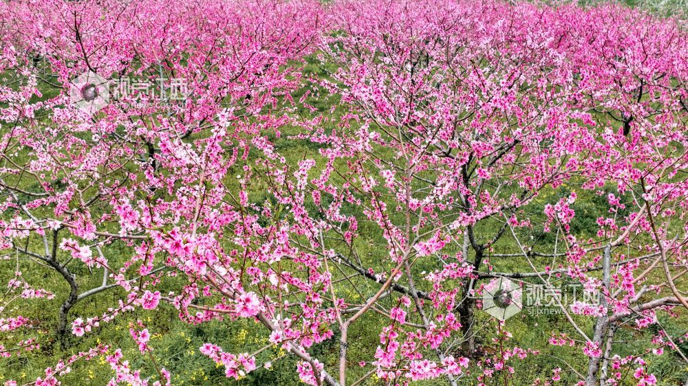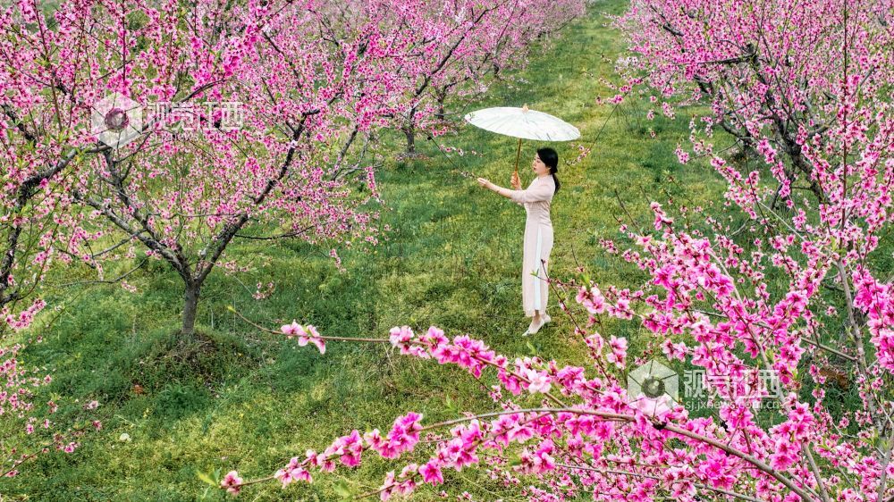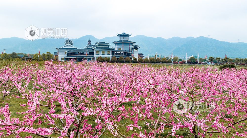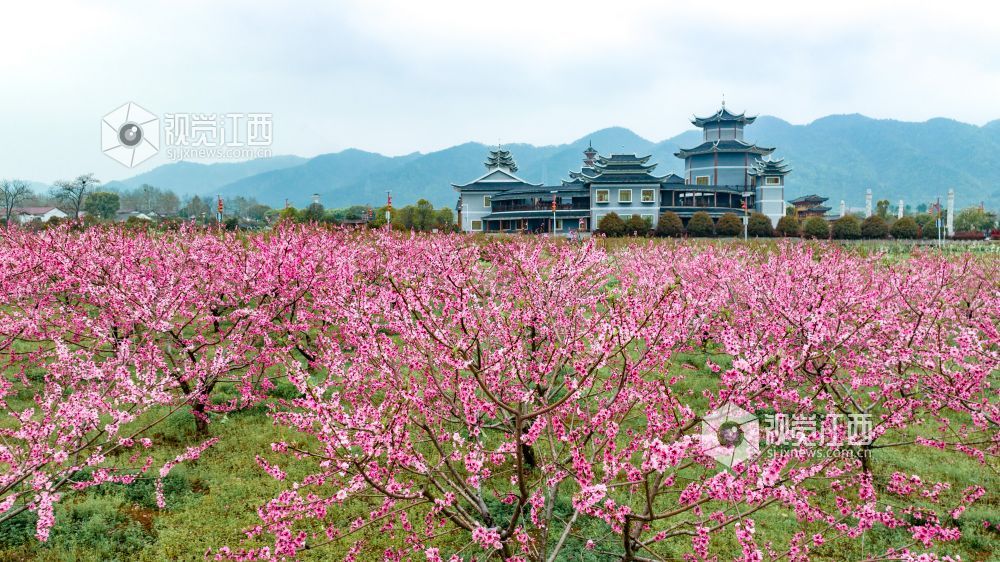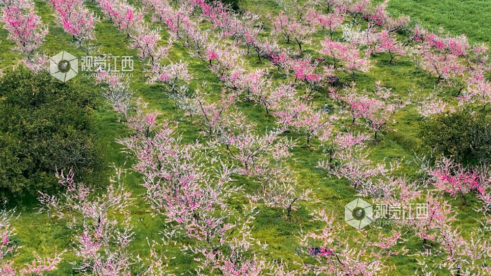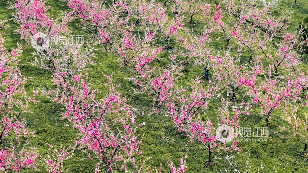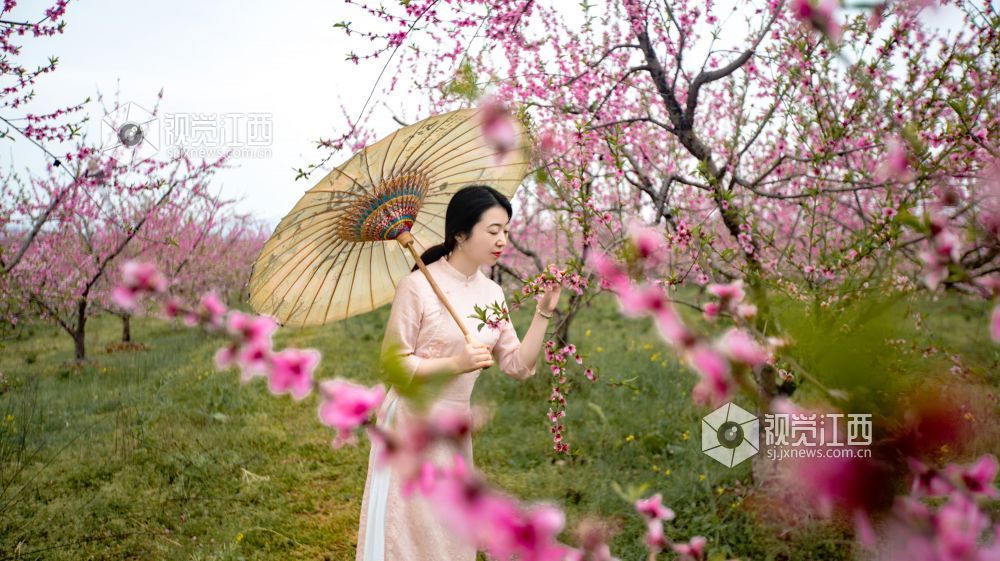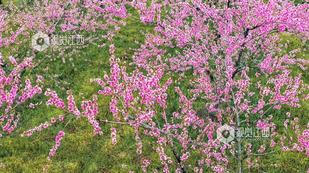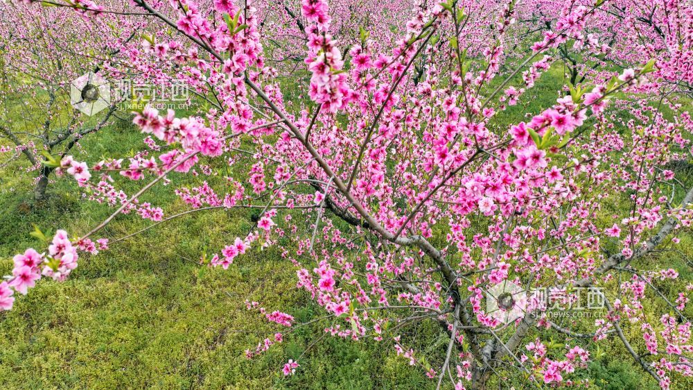 桃花春色暖先开,明媚谁人不看来。近日,在江西省吉安市峡江县金坪民族乡新民村桃林基地,桃花竞相绽放,点缀在乡野之间,漫山的桃花迎风起舞,美景如画,慕名而来踏青赏花的人们尽情感受着春天的气息。