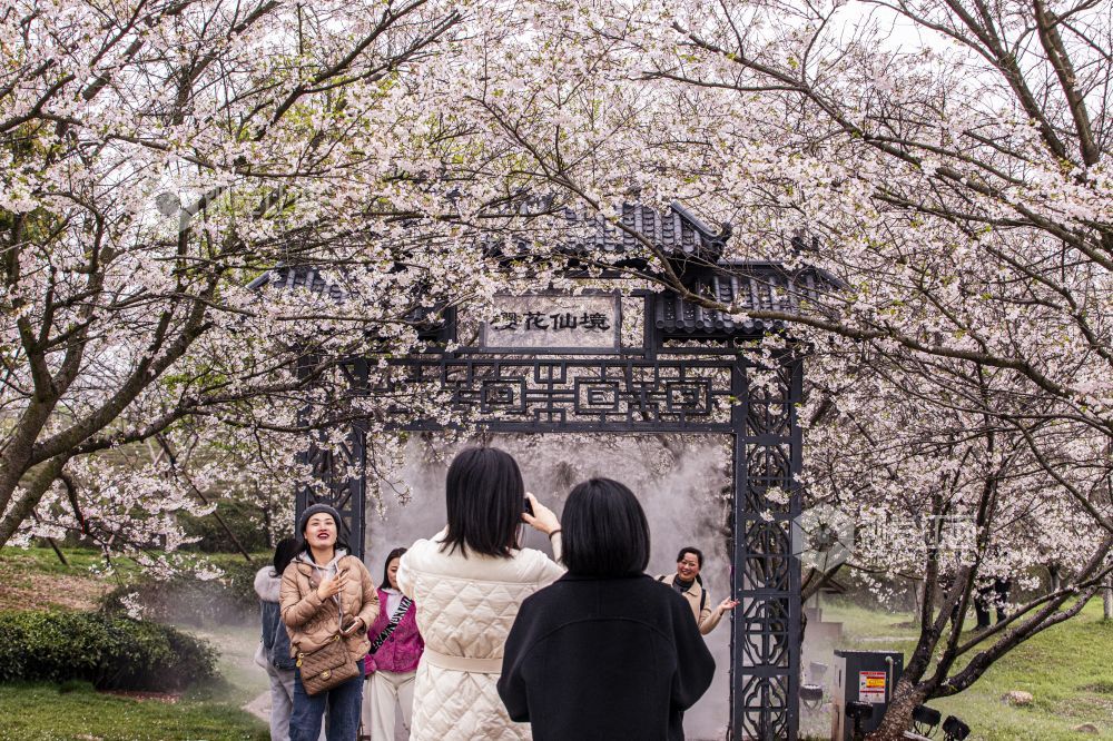 2023年3月22日,江西省南昌凤凰沟景区樱花盛开,浪漫绚烂如云似霞,引无数游人观赏。