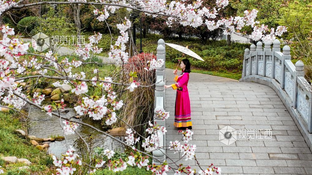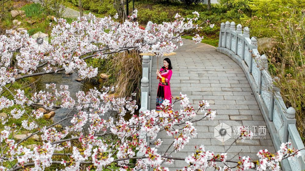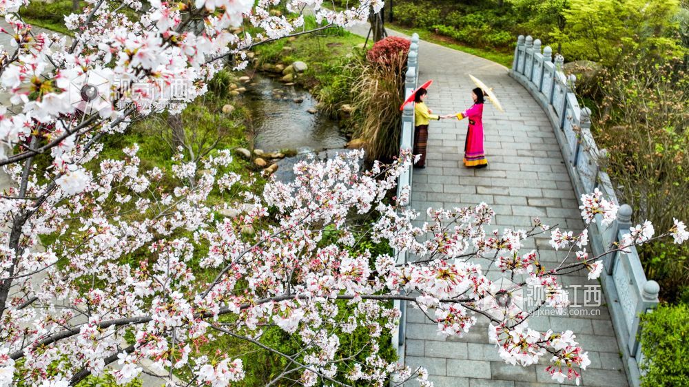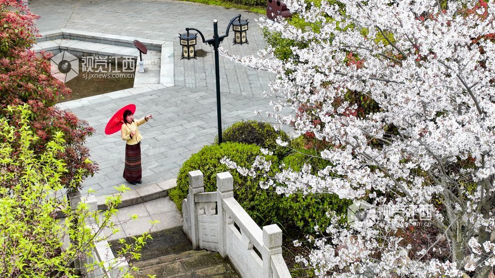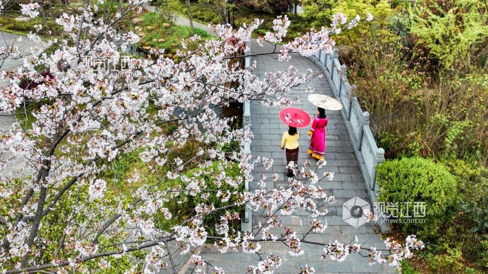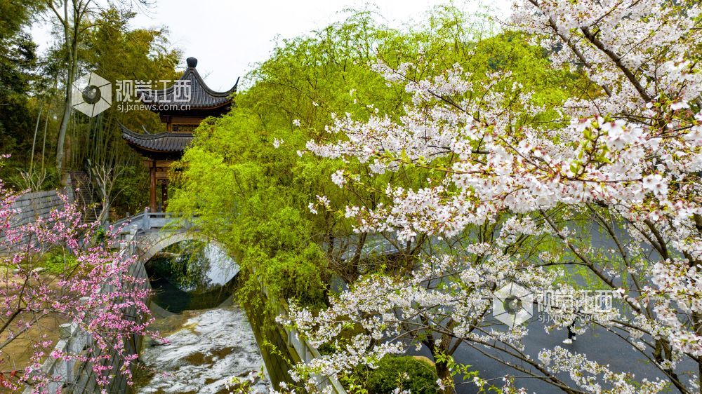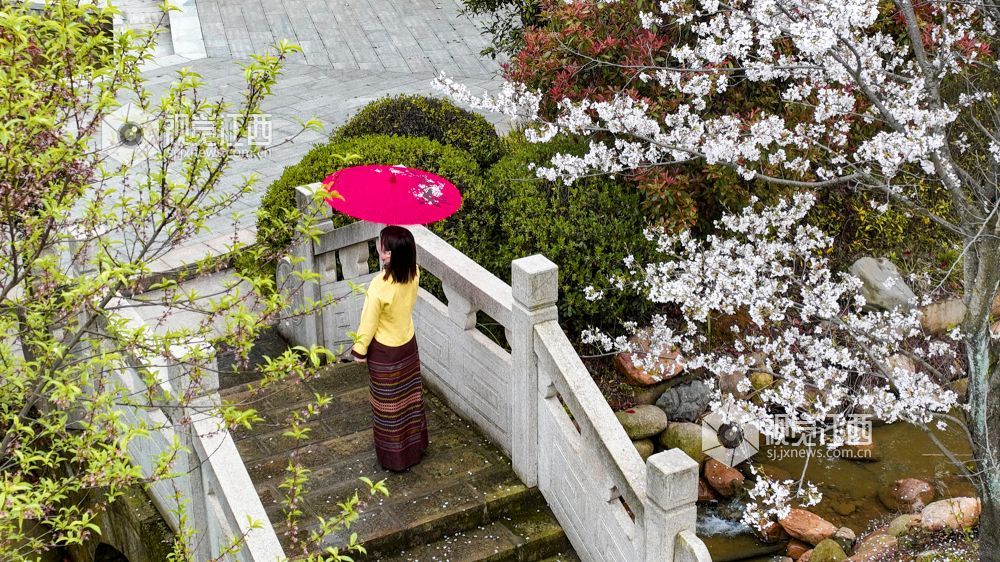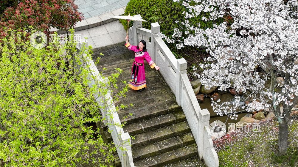 近日,春光明媚,在江西省吉安市峡江县水边镇玉笥山康养胜地,浪漫樱花随风飘落,如梦如幻。
