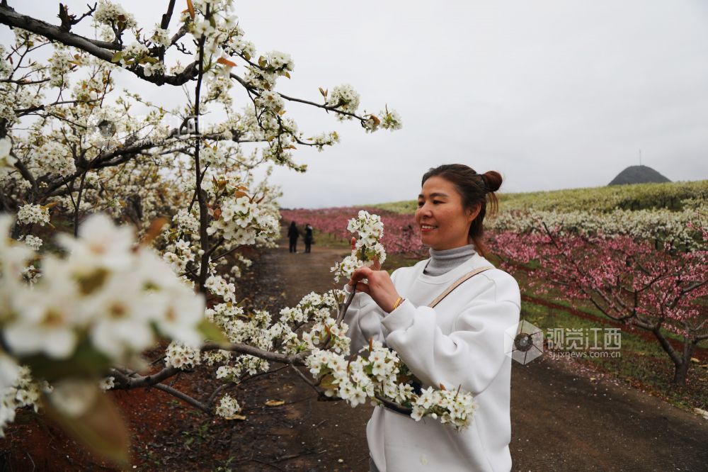 阳春三月,春暖花开。3月26日,江西省莲花县六市乡卓氏果园,漫山的梨花竞相绽放,与粉红色的桃花相映成趣,慕名而来的游客纷纷徜徉其中踏青寻春,拍照留影,尽情感受着春天的气息。近年来,当地充分利用海拔高、生态好的优势,大力发展水果产业,种植黄桃、蜜梨、西瓜等生态作物6000多亩,吸引游客前来赏花休闲、采摘游玩,带动群众增产增收,助力乡村振兴。