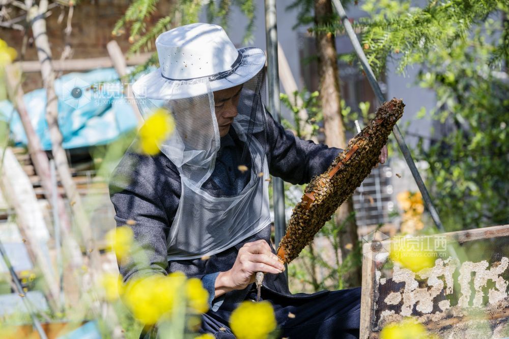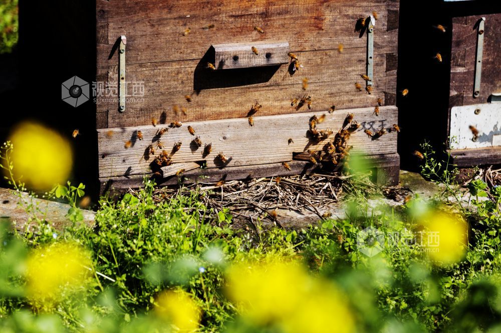 3月26日,江西新余仙女湖区观巢镇3千余亩的油菜花已进入盛花期。春风吹拂,菜花摇曳,满目金黄。随着油菜花盛开。田间地头到处可见错落摆放的蜂箱,蜂箱旁,成群结队的蜜蜂在不停穿梭采蜜,养蜂人也迎来了收获的“旺季”。