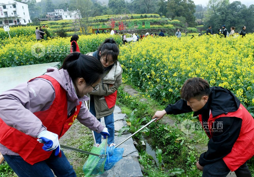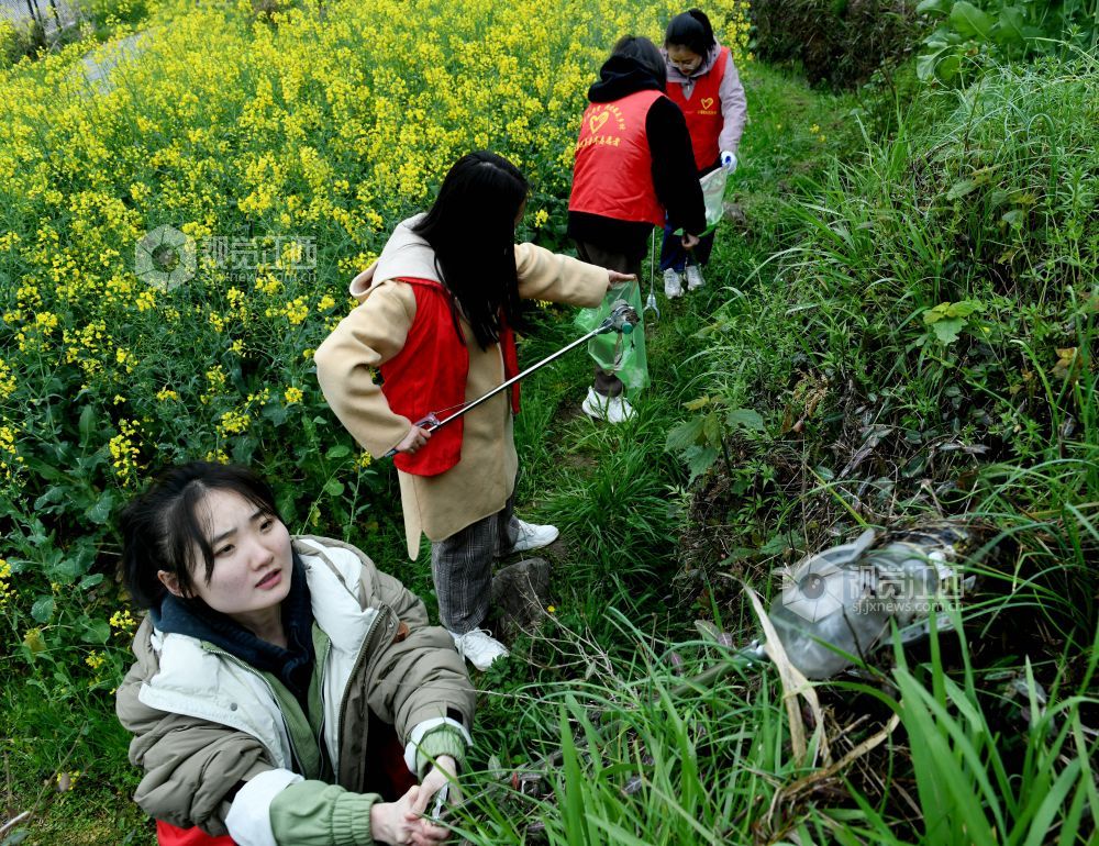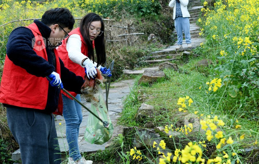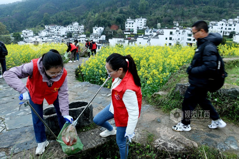 当天,正值江西省婺源县江岭油菜花海赏花旺季,前来江西省婺源赏花踏春的游客络绎不绝。该县溪头乡全体机关党员干部放弃假日休息时间,来到当地万亩梯田油菜花海,义务收捡游客留下的塑料袋、烟头和矿泉水瓶等生活垃圾,倡导游客文明出行、绿色出游。