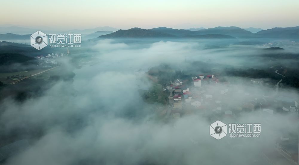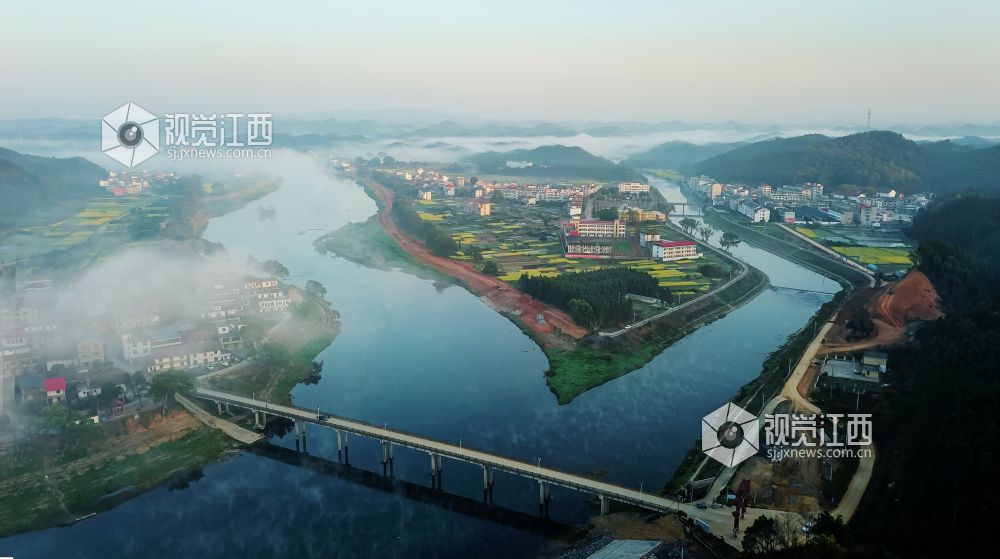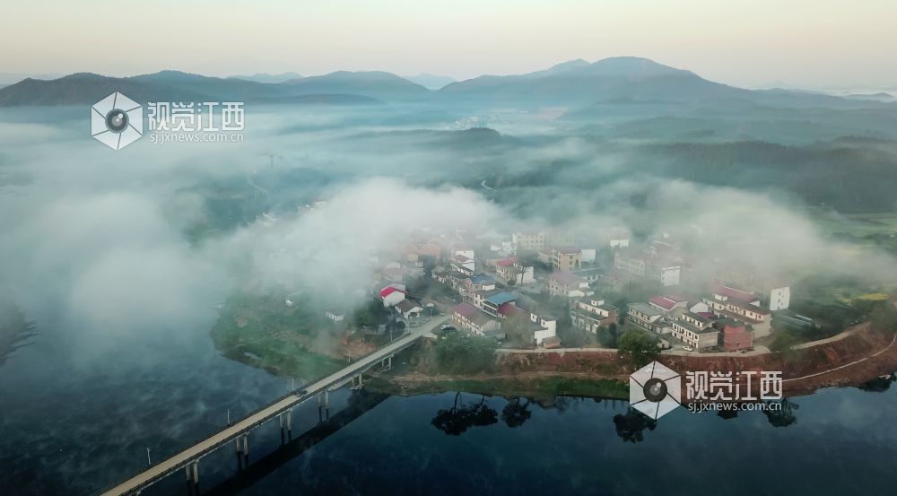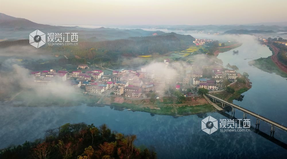 2023年3月31日,雨后的江西省分宜县洋江镇杨潭村的杨溪河畔,云雾缭绕仙气飘飘,如梦似幻人间仙境,河流、青山、田野、民居构成了一幅美丽的乡村画卷。