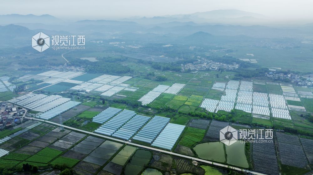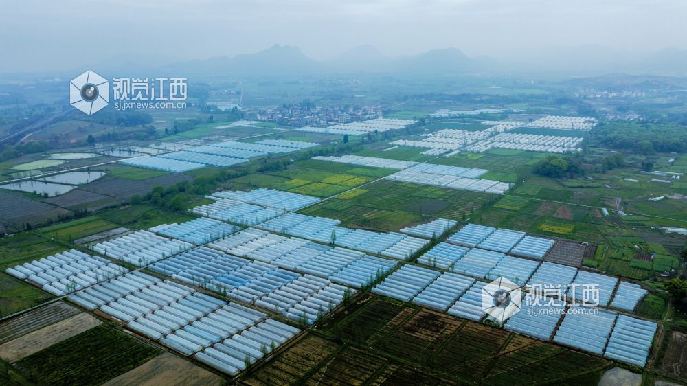 4月2日,江西新余仙女湖区观巢镇的2000亩大棚成为乡村田野的一道靓丽风景。