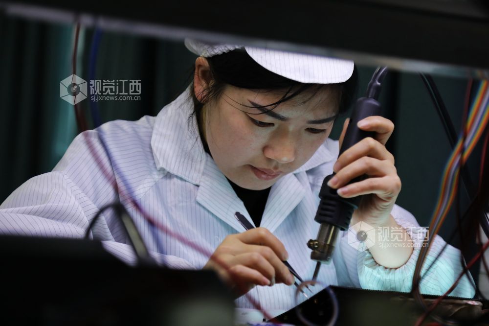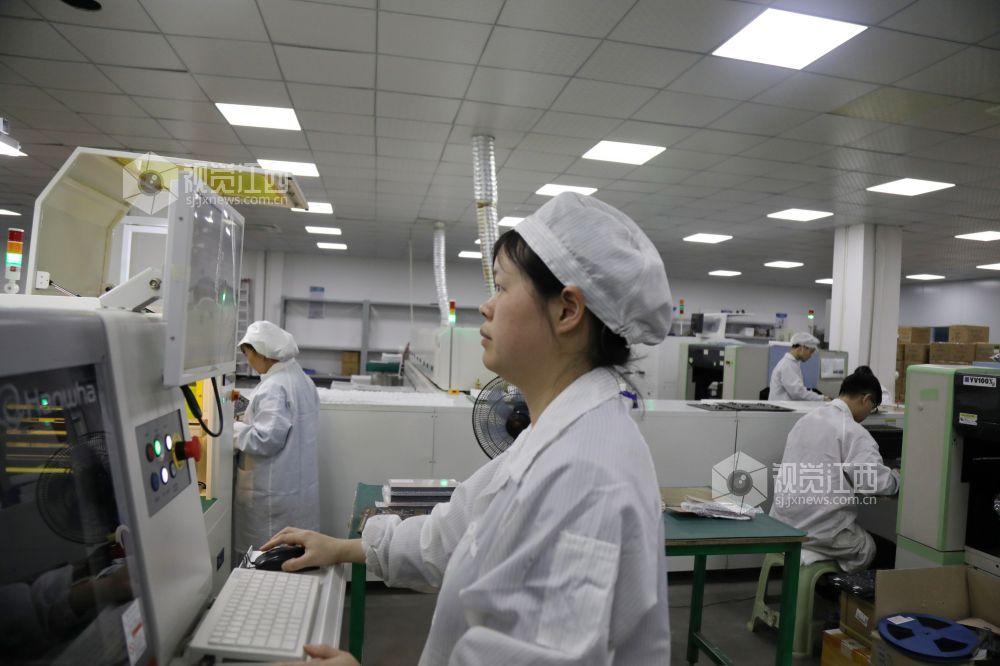 4月3日,江西省莲花县工业园区江西鑫彩晨光电科技有限公司车间里,工人正在紧张地生产。